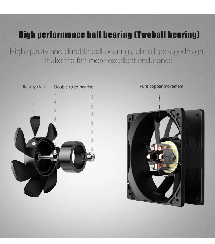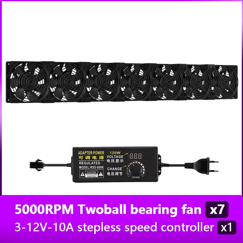 Comprar Ventilador de refrigeración violento para PC BTC, máquina de minería abierta, gabinete de servidor de chasis, 12038, 5000RPM, rodamiento de bolas dual, 12cm, 100V, 110V