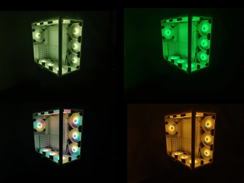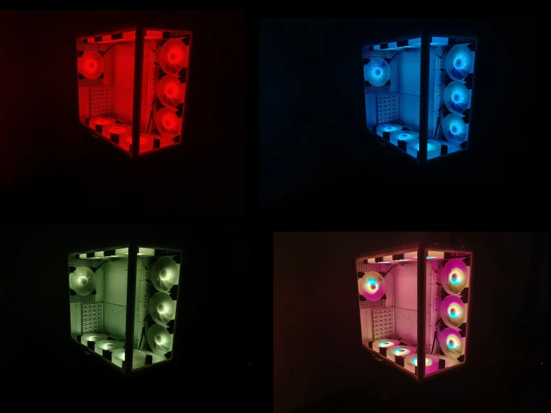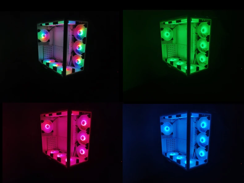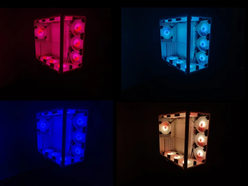 El siguiente diagrama muestra el efecto de 10 ventiladores RGB instalados en un chasis y controlador durante el disparo real