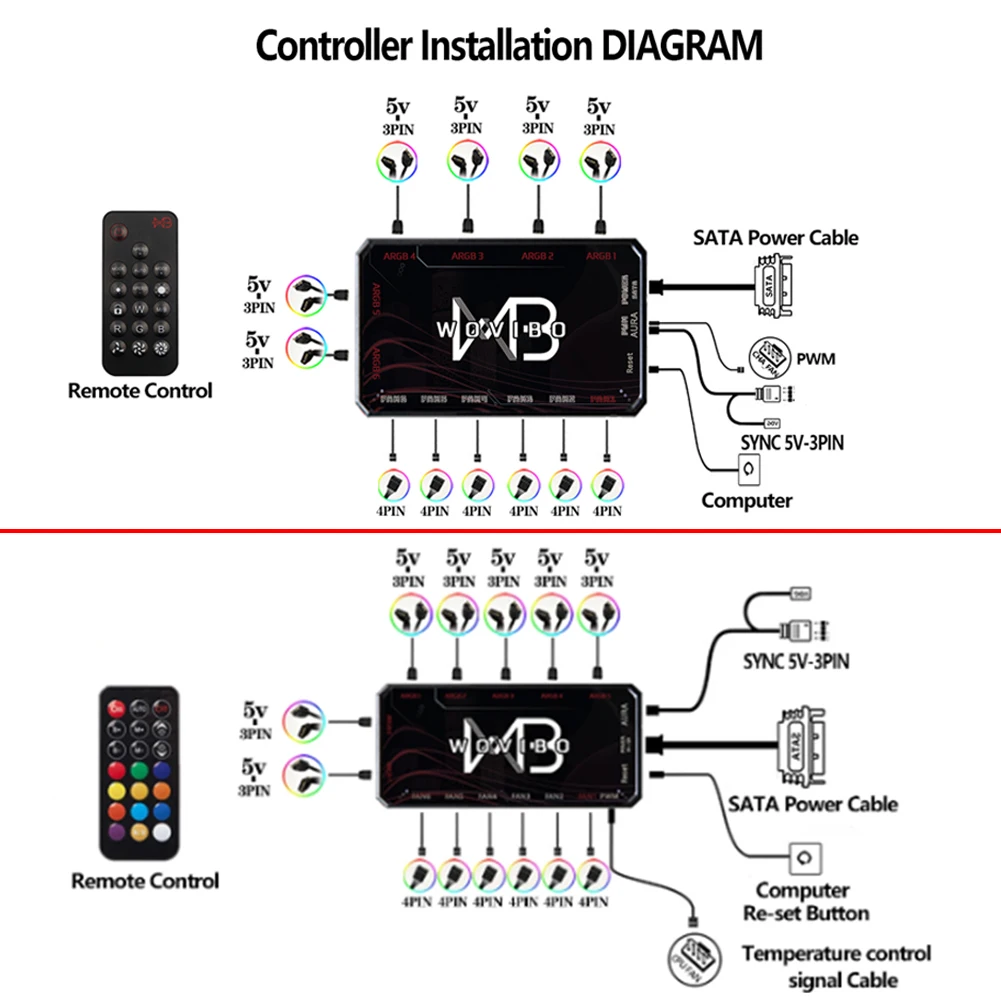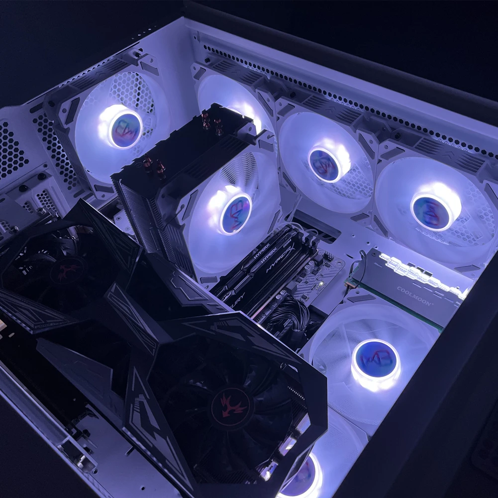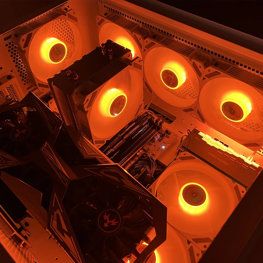 1.Admite control de temperatura PWM de cuatro pines, admite sincronización ARGB Shenguang de 5 V, se puede instalar en el enfriador de CPU, radiador 120/240/360 y también se puede usar en el chasis.