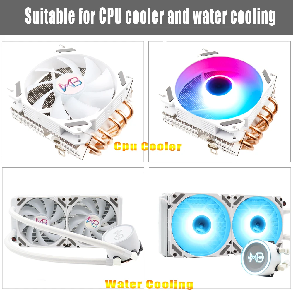 Comprar Ventilador RGB ARGB de 120mm, Ventilador blanco PWM, 4 pines, 5V, 3 pines, para enfriador de CPU, refrigeración por agua, chasis de ordenador