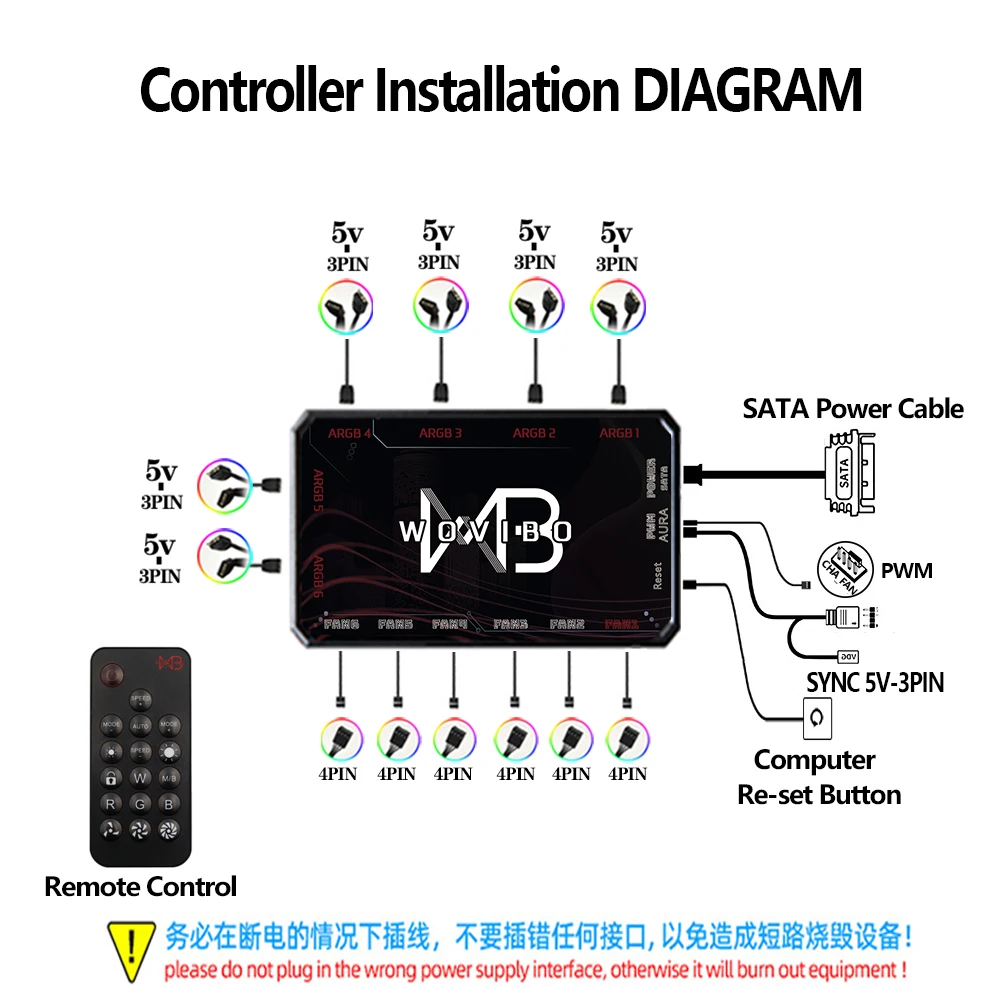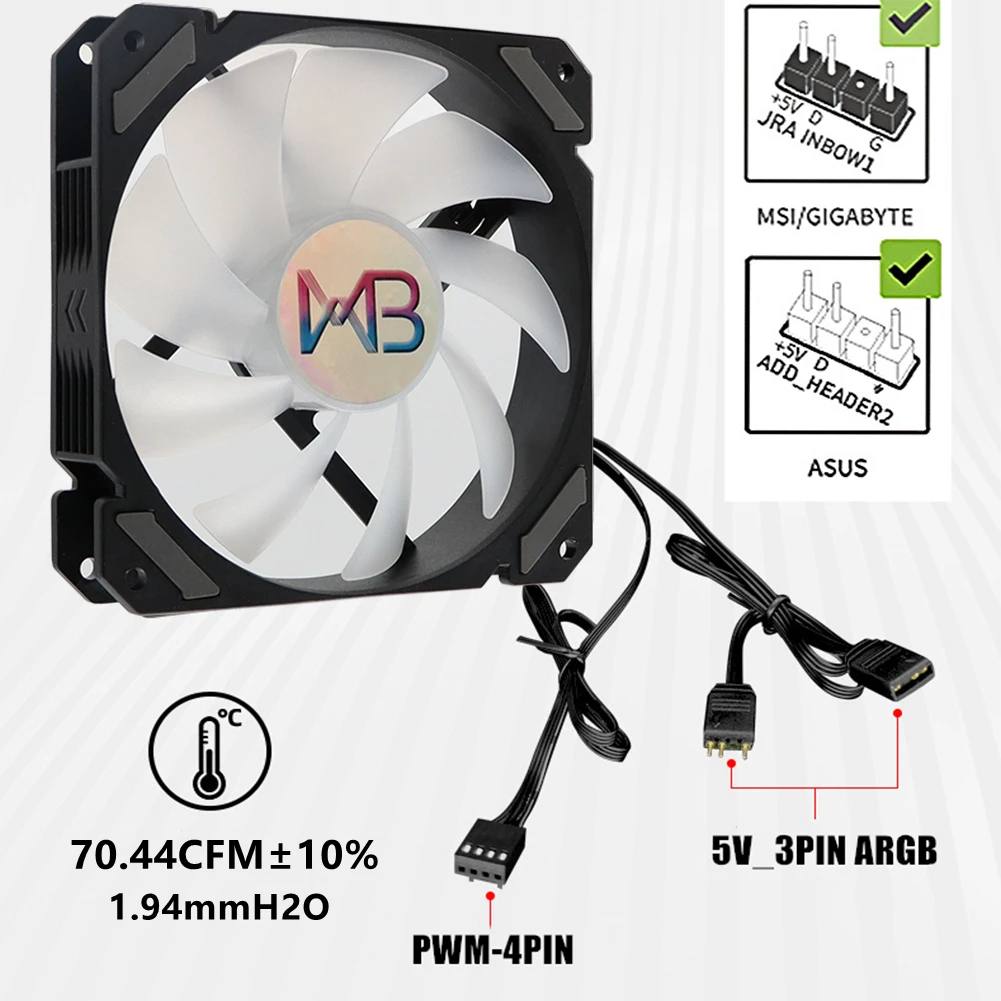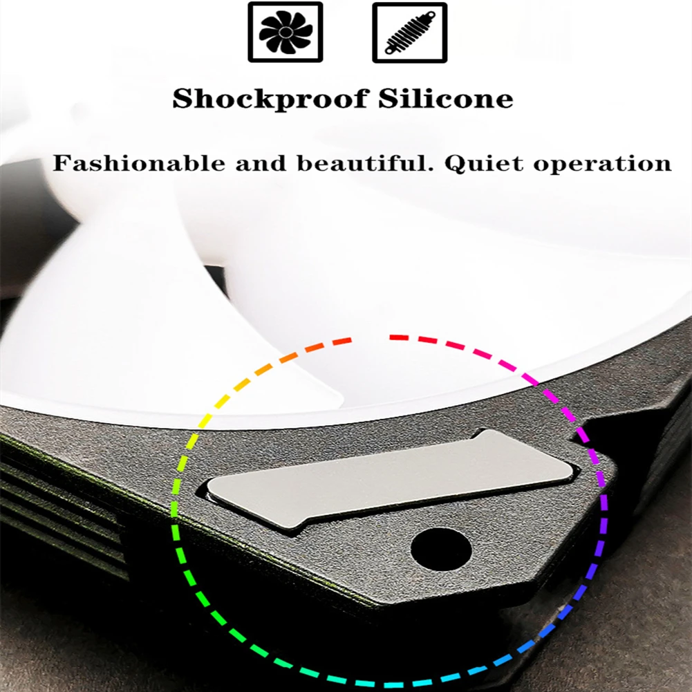 4.Admite placas base ARGB de 5V3 pines como ASUS, MSI, Gigabyte, ASRock, etc., mediante control de software de sincronización de iluminación del ventilador; Admite 16 millones de colores programables.