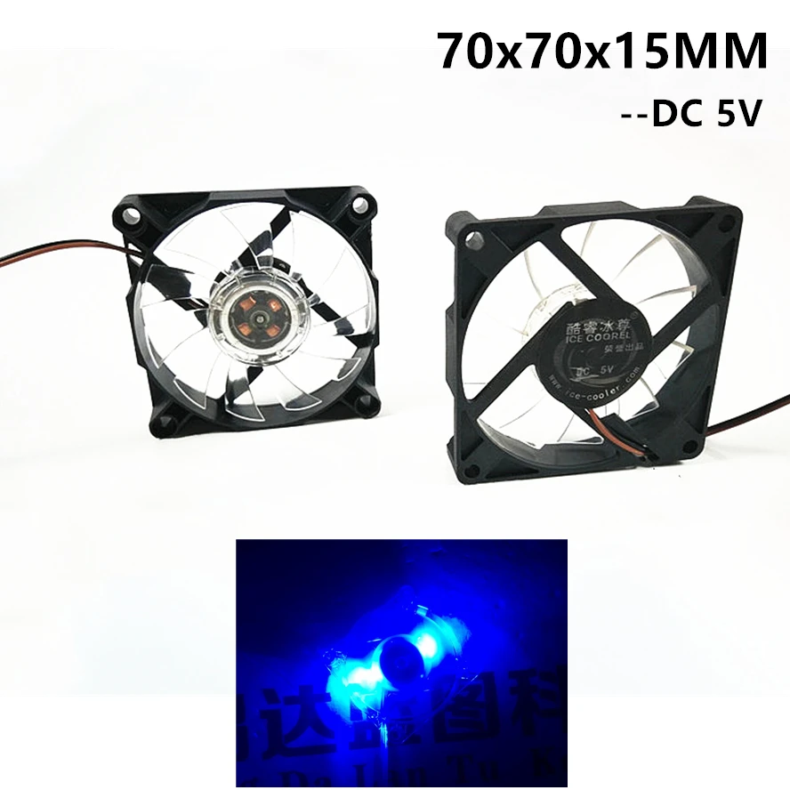 Comprar Ventilador silencioso con 2 cables USB, ventilador de refrigeración LED azul, DC 5V, 70MM, 70x70x15mm, 7015