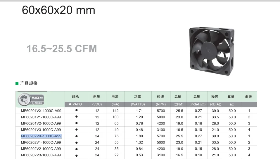 Comprar Ventilador silencioso para impresora 3D, MF60202V3-1000C-A99 de 60mm, 24V, 6cm, 60x60x20mm, para Sunon 6020