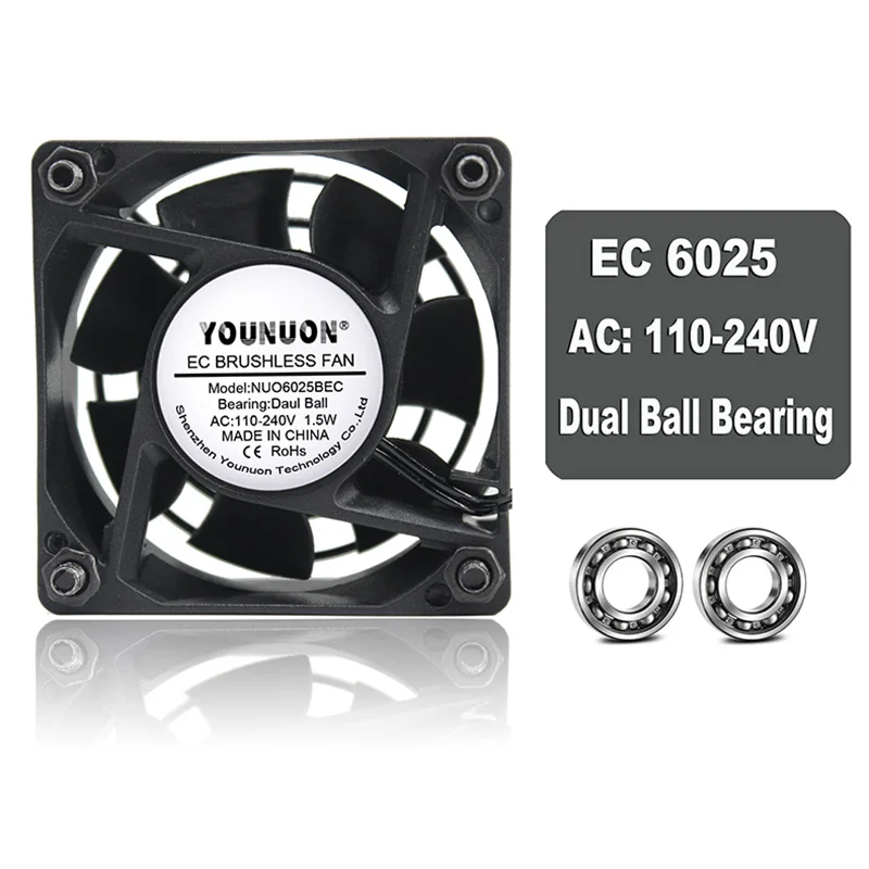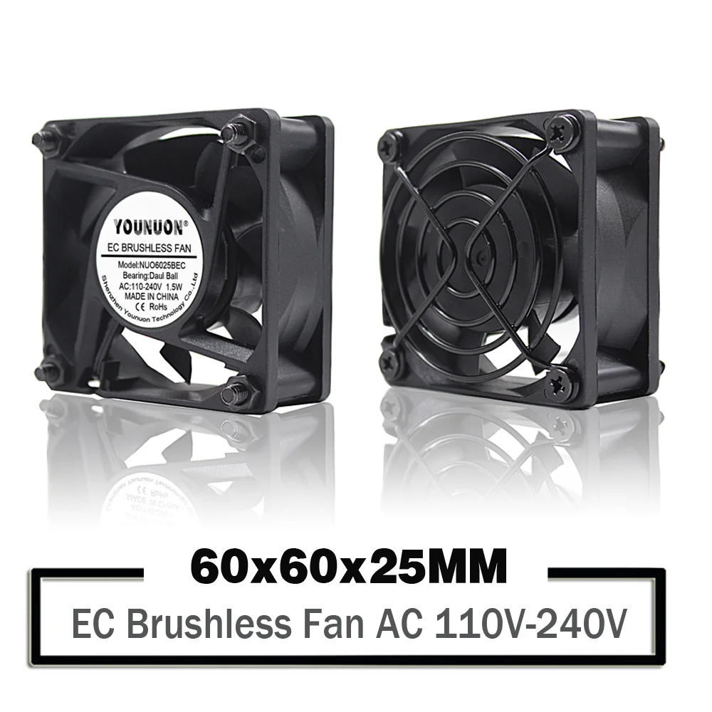Comprar Ventilador sin escobillas EC de doble bola, enfriador industrial Axial de 60mm, 6CM, 60x60x25mm, CA 110V, 115V, 120V, 220V, 240V, 6025 V, 1 unidad