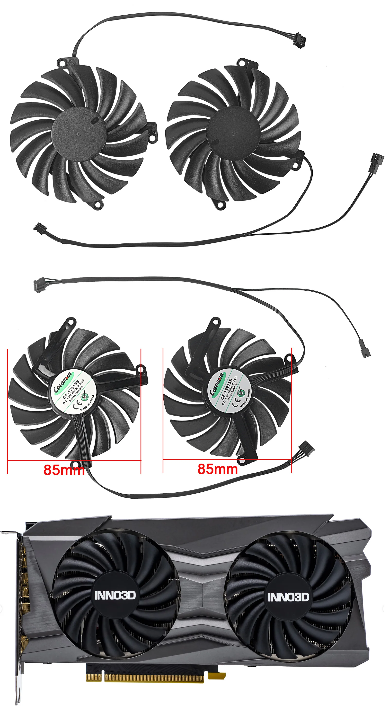 Ventilador de tarjeta gráfica de 85mm DC 12V 0.35A CF-12910S RTX3060Ti RTX3070 para Inno3D GEFORCE RTX 3050 3060Ti 3070 TWIN X2 OC