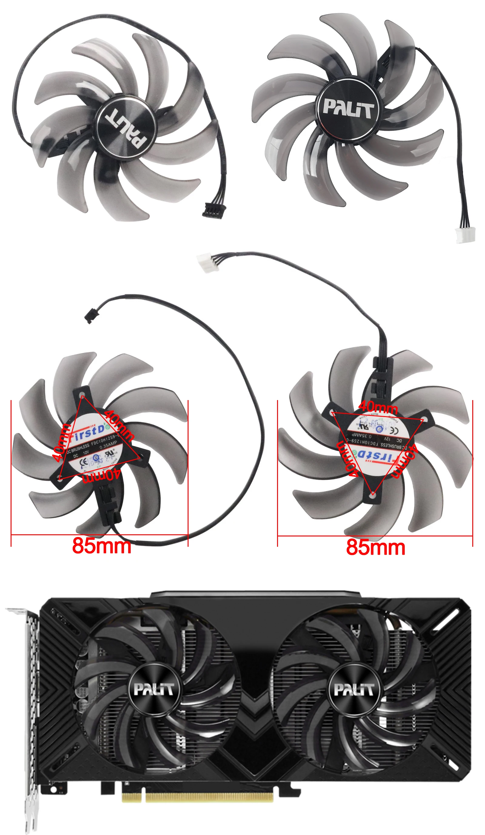 Ventilador enfriador de tarjeta gráfica de 85mm y 12V para Palit GTX 1660 Ti Super RTX 2060 2070 RTX2060 Dual OC refrigeración de tarjeta de vídeo