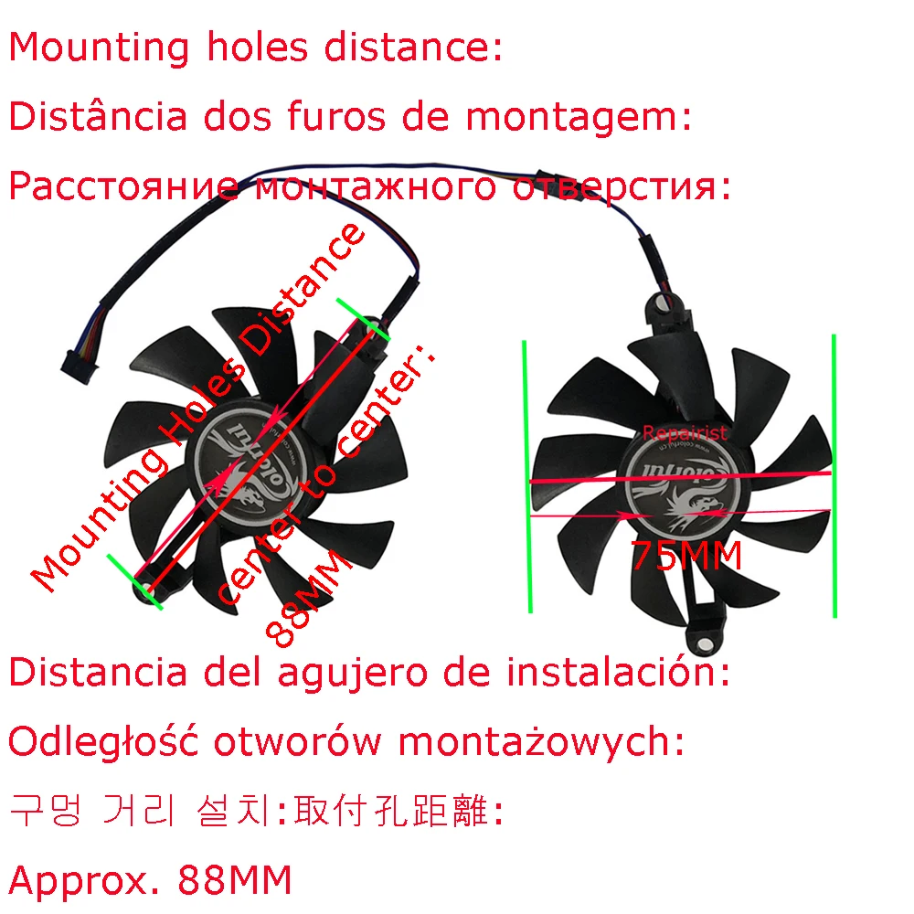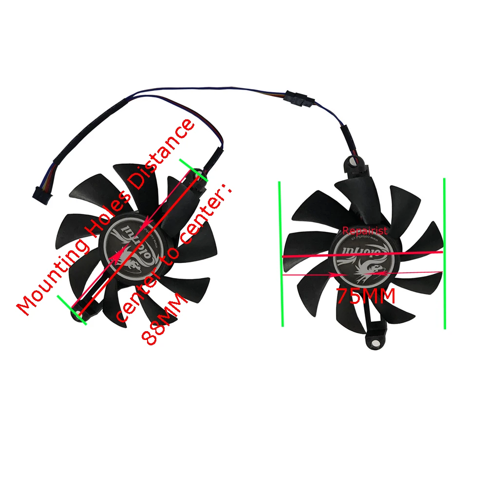 El paquete incluye:Comprar Ventilador de tarjeta gráfica de vídeo, refrigeración de vídeo VGA GPU, 75MM,88mm, agujeros de montaje de paso, para Colorful GTX 1060 GAMING V5 A B, 2 unidades por juego