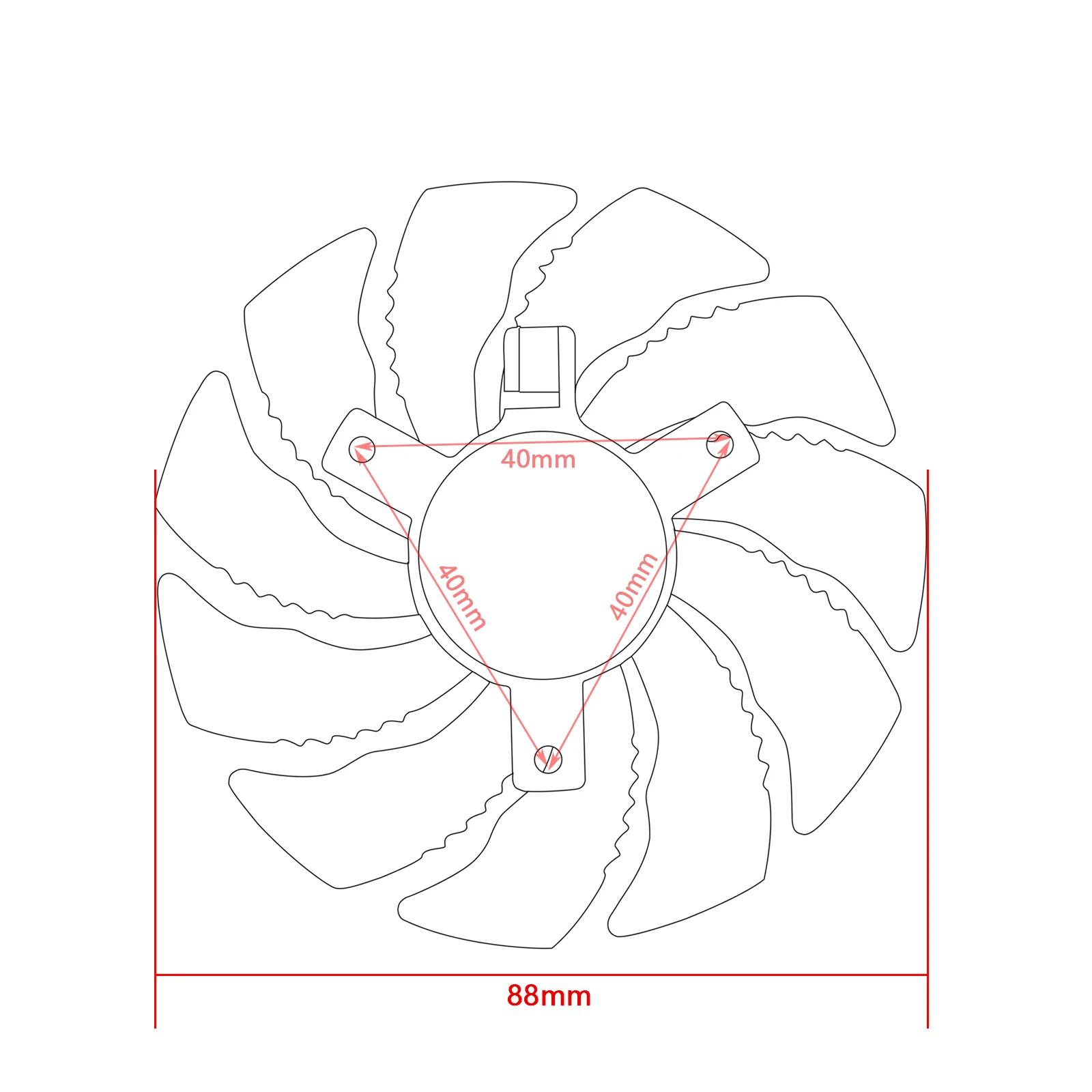 Dimensiones del ventilador (largo x ancho x Alto): aprox. 88mm x 88mm x 10mm(El Sitio web oficial muestra 90mm)