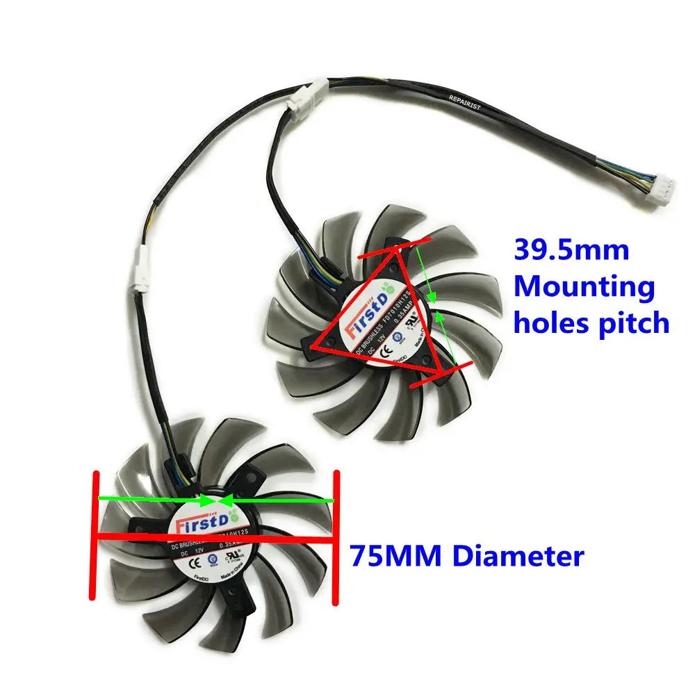 Comprar Ventilador para tarjeta de vídeo gráfica, Enfriador de GPU, 4 pines, 75mm, FD7010H12S, para ASUS GTX 750 650 Ti 660 670, para MSI R6790 Twin Frozr II, 2 unidades/juego