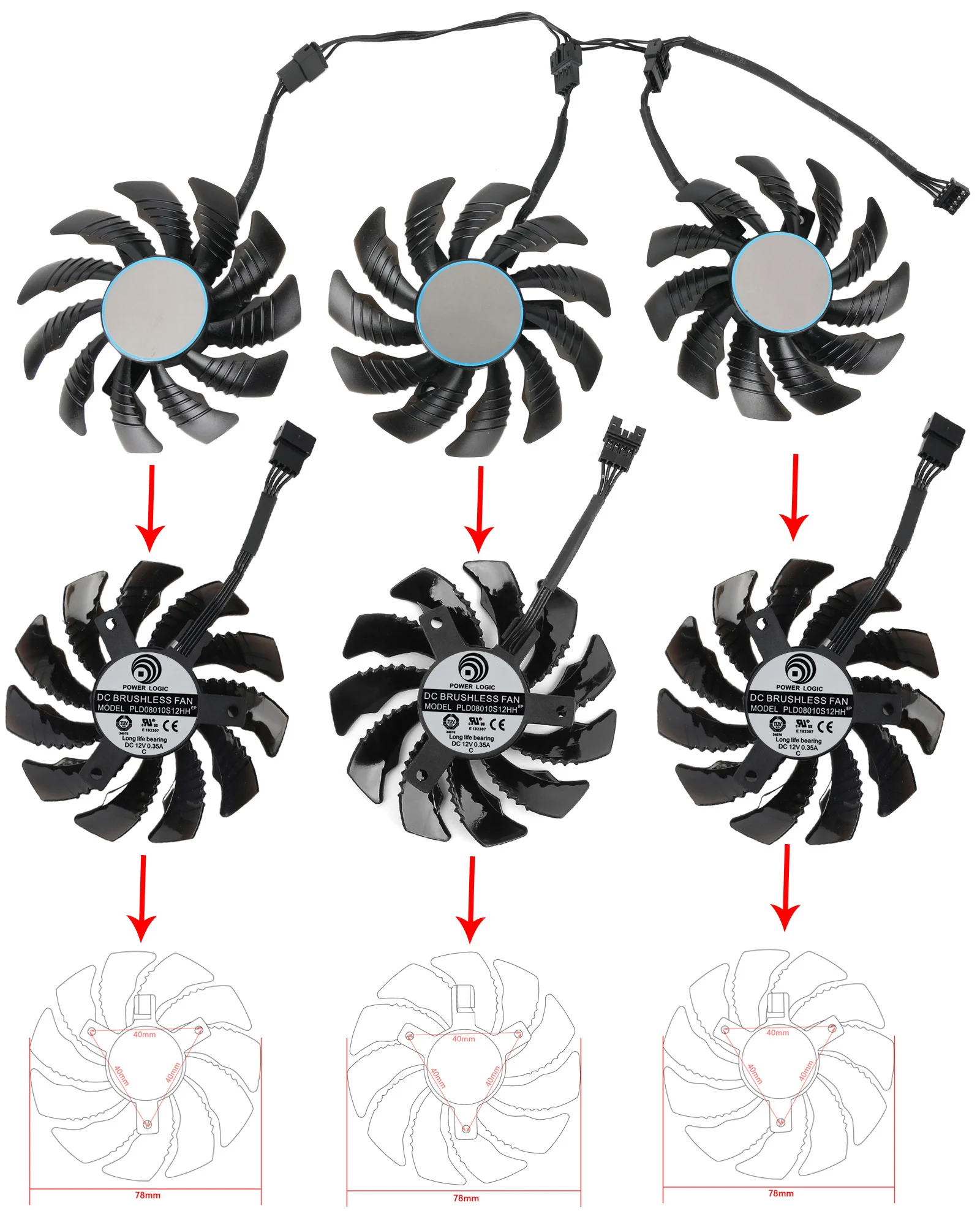 Nuevo ventilador de tarjeta de vídeo Original para Gigabyte Radeon RX 6700XT 6600XT 6600 RTX 3070Ti 3070 EAGLE 78MM PLD08010S12HH GPU ventiladorAtención: