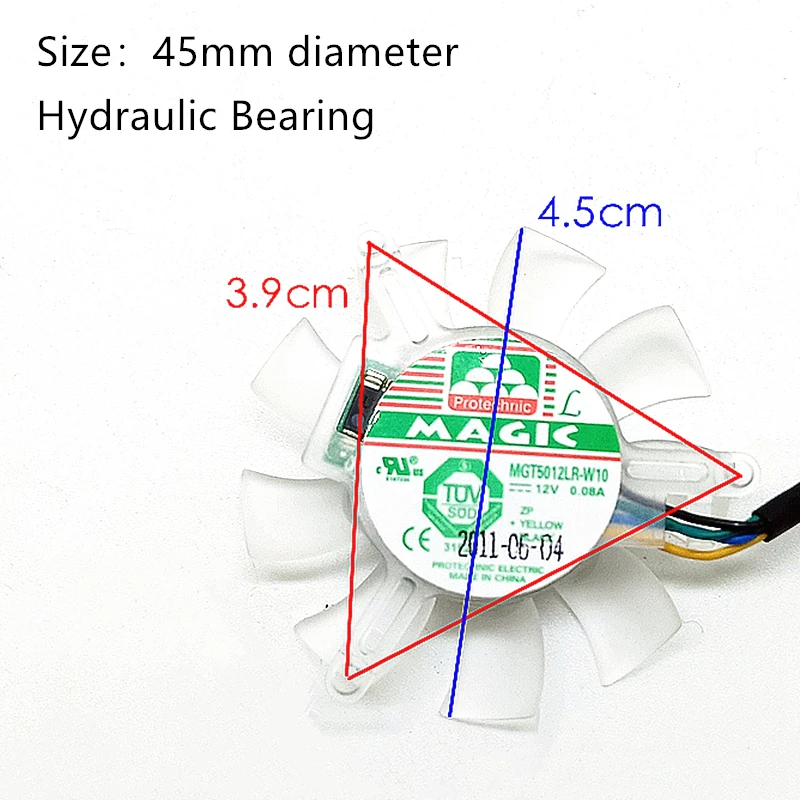 Comprar Ventilador para tarjetas gráficas, MDA5012LR-A10 de alta calidad, ultra silencioso, 5010, 45MM de diámetro, 39mm, agujero de paso, 12V, 0.1A, 2 pines