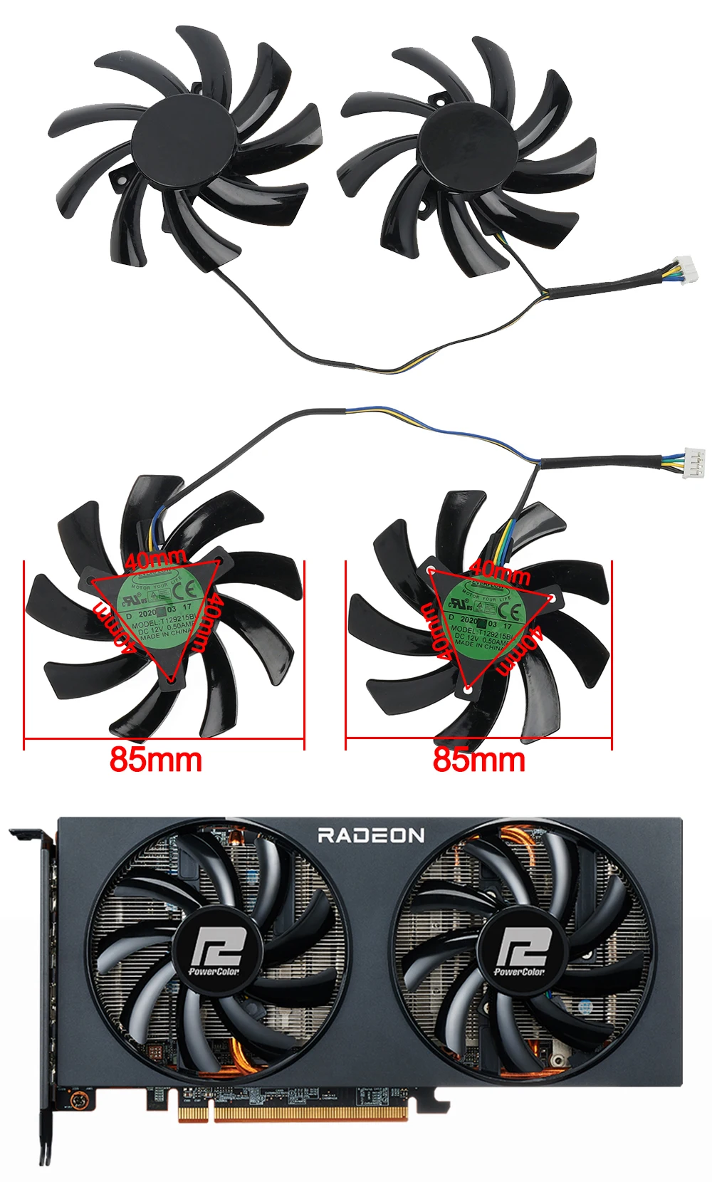 Comprar Ventilador de tarjetas gráficas, ventilador de refrigeración para Powercolor Fighter AMD RX 6700XT 6600XT 6600 RX 5700 5500 XT, 85mm T129215BU RX 6700XT