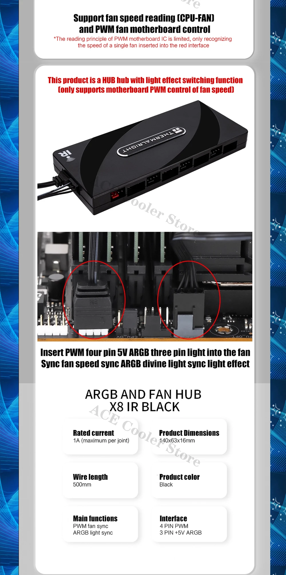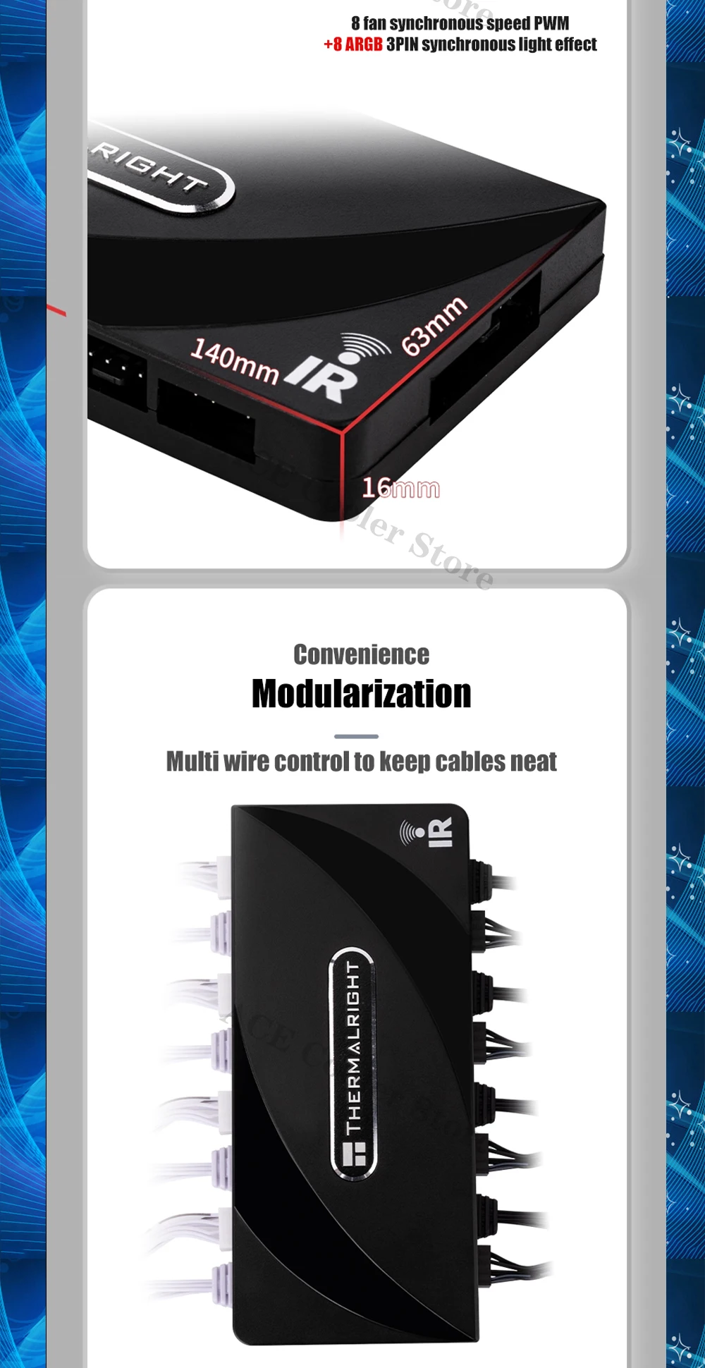 VENTILADOR térmico y HUB ARGB X8 1 a 8 expansión 4 pines PWM Hub de ventilador 3 pines 5V ARGB divisor Hub controlador piezas de refrigeración de PC