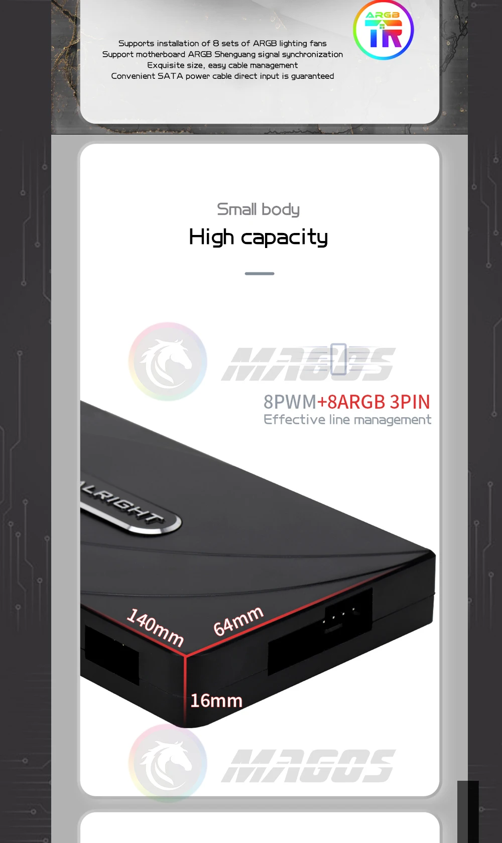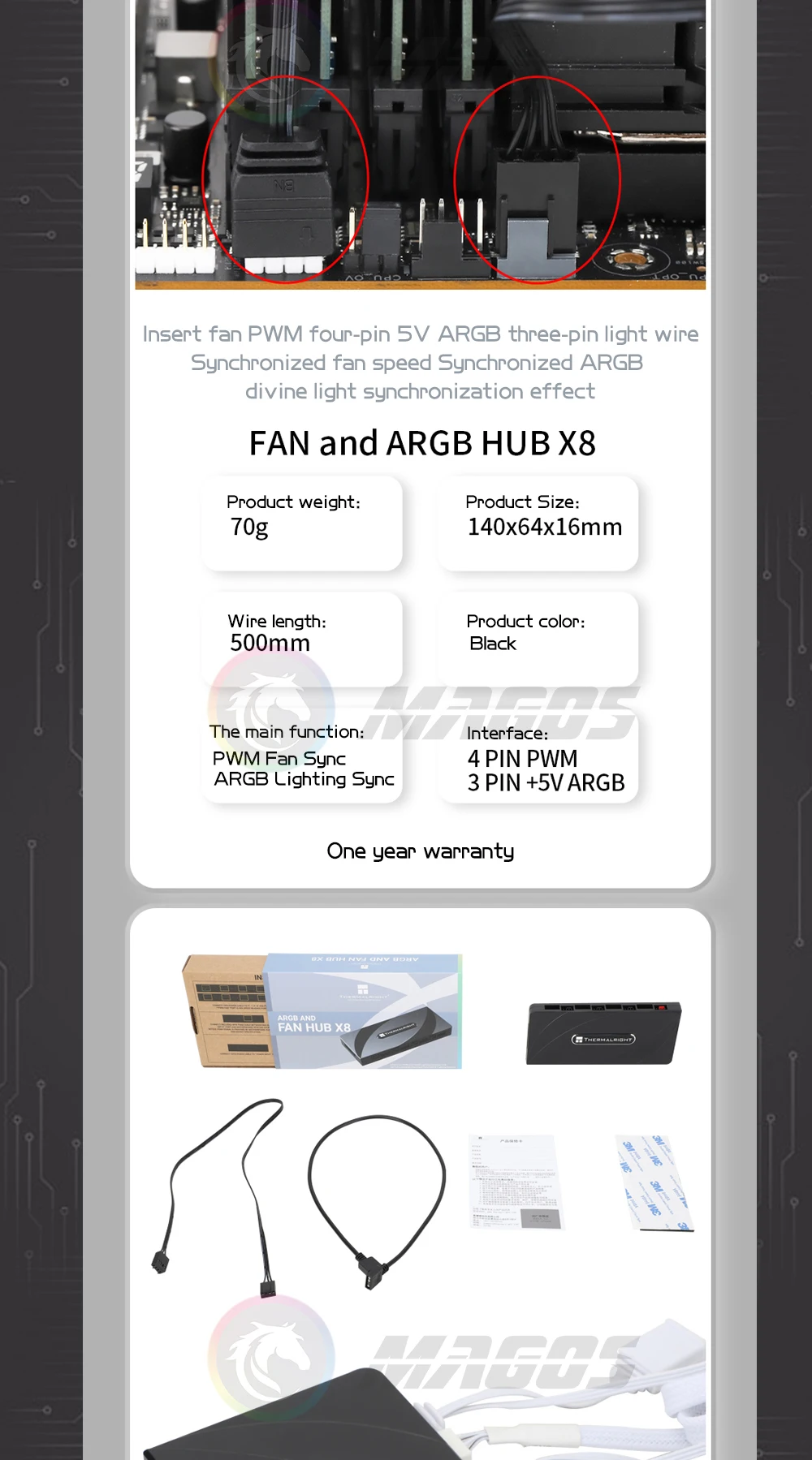 Comprar Ventilador Thermalright PWM HUB X8 Placa base SYNC/4 PIN PWM + 3 PIN+5V ARGB 140X64x16mm