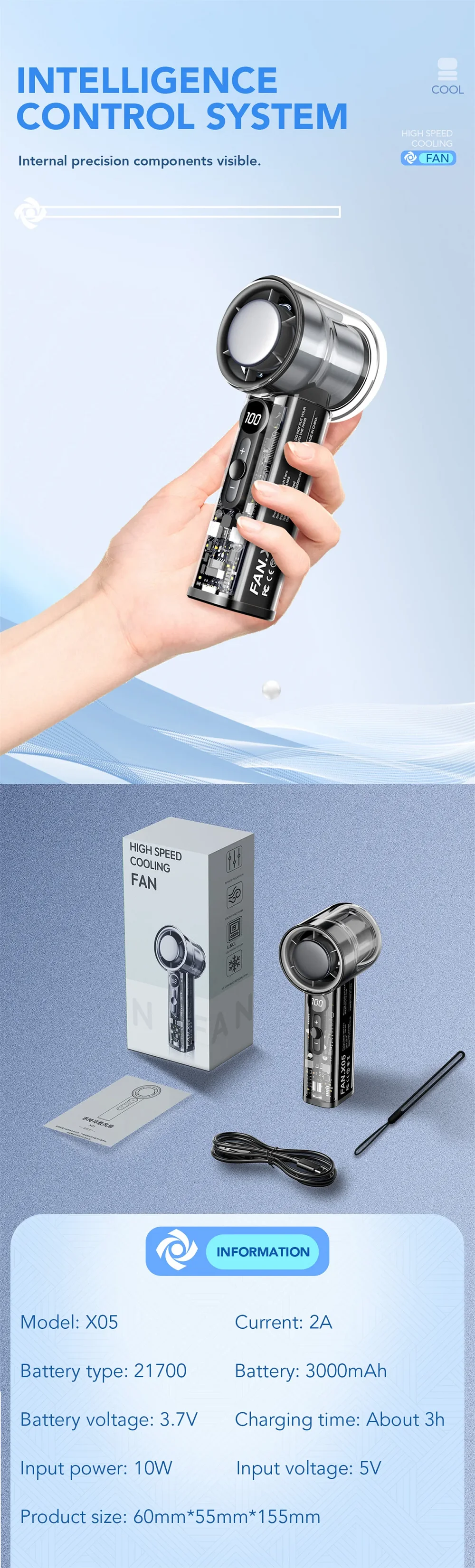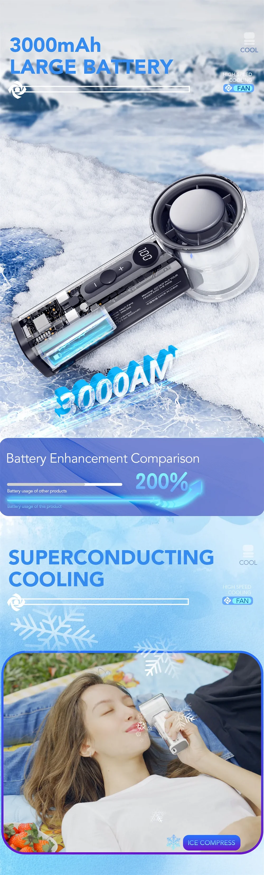 Ventilador Turbo portátil de refrigeración, recargable por USB, 100 velocidades de viento, Mini ventilador Personal para viajes, Camping, exteriores e interiores