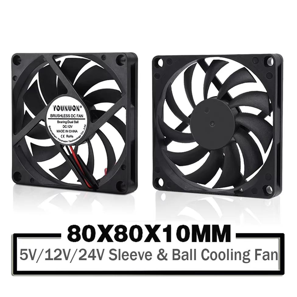 Comprar Ventilador YOUNUON de 80MM, ventilador USB de 5V, 80x80x10mm, 8cm, CC de 5V, 12V, 24V, 8010, ventilador de refrigeración sin escobillas, ventilador de PC, ventilador con cubierta de ordenador