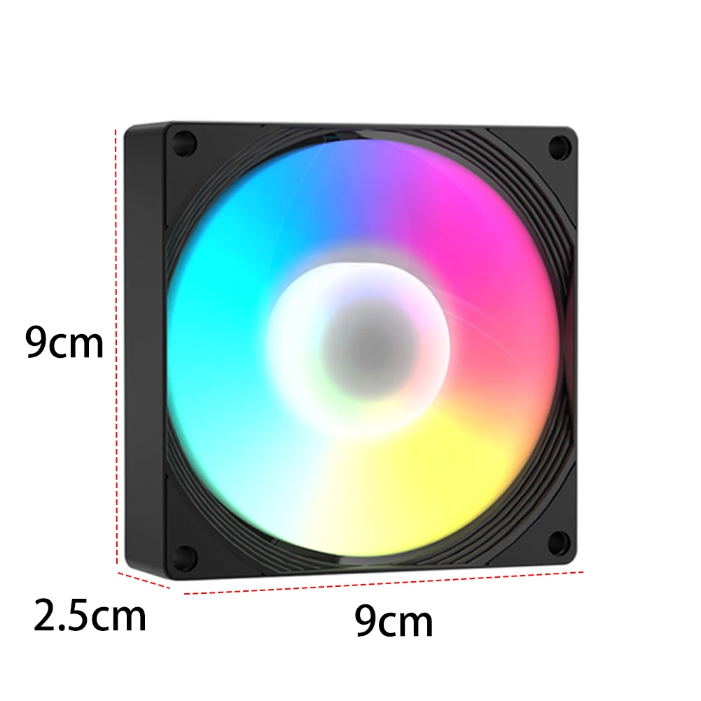 1.Estilo compacto:El ventilador con carcasa RGB de 9 cm presenta un diseño elegante y minimalista con efectos de iluminación RGB en las aspas, disponible tanto en blanco como en blanco para combinar con la estética de cualquier carcasa de computadora.
