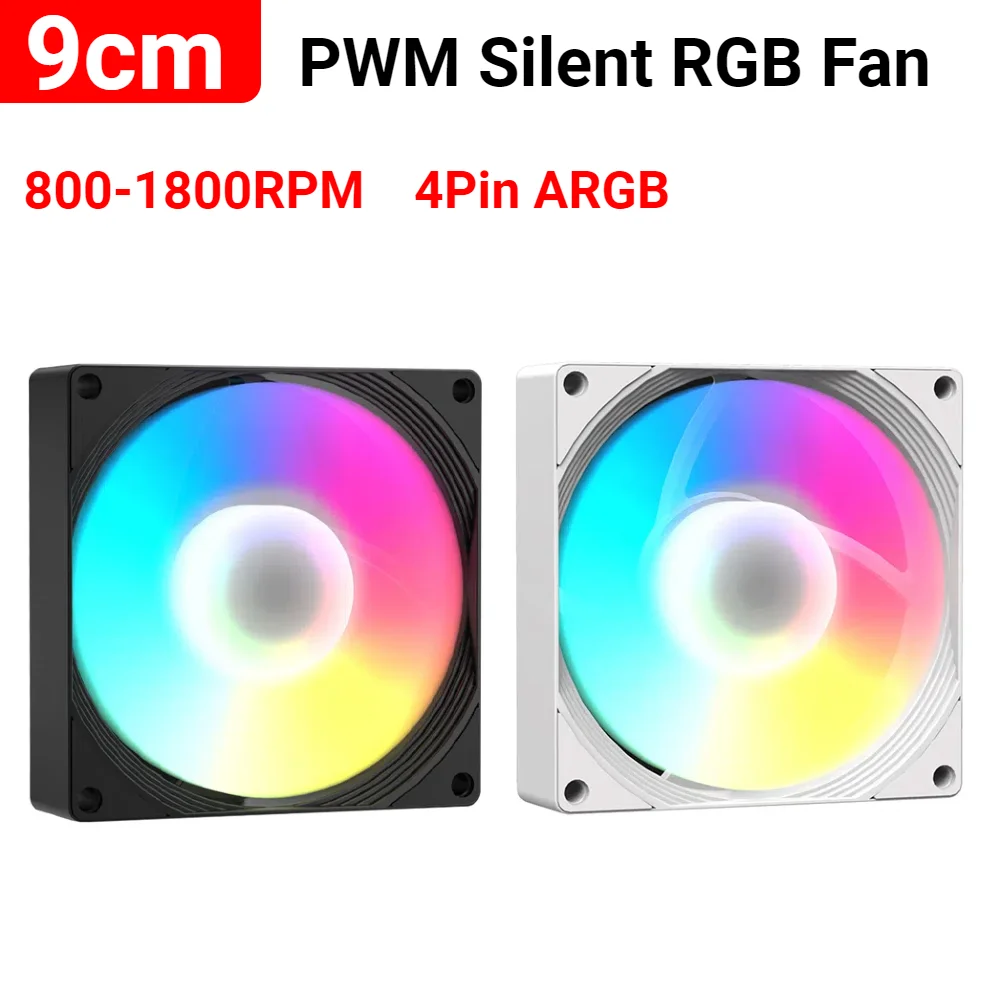 Ventilador de computadora silencioso PWM de 9 cm, velocidad de 800-1800 RPM, ventilador de refrigeración silencioso, ventilador de chasis ARGB PWM de 4 pines para carcasa de computadora y radiador de líquido