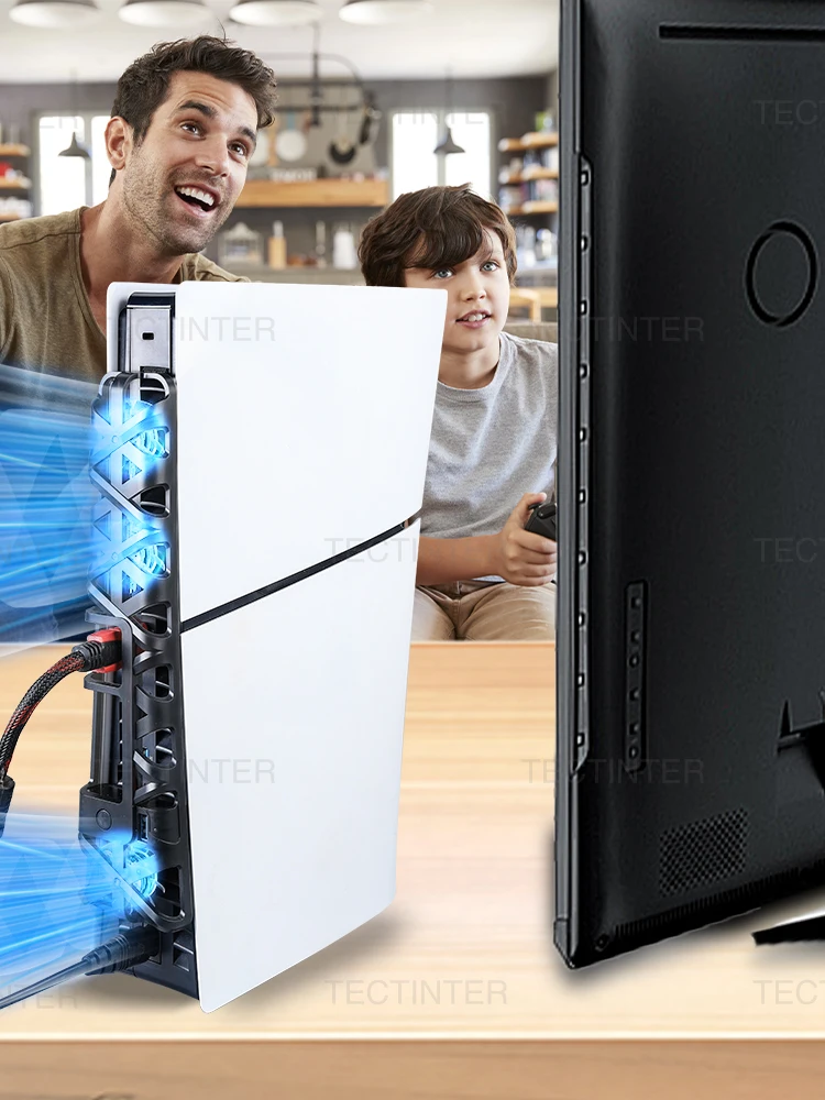 ·Equipado con tres potentes ventiladores, este ventilador de refrigeración lateral proporciona una mayor eficiencia de refrigeración, evitando eficazmente el sobrecalentamiento y extendiendo la vida útil de su consola PS5 Slim.