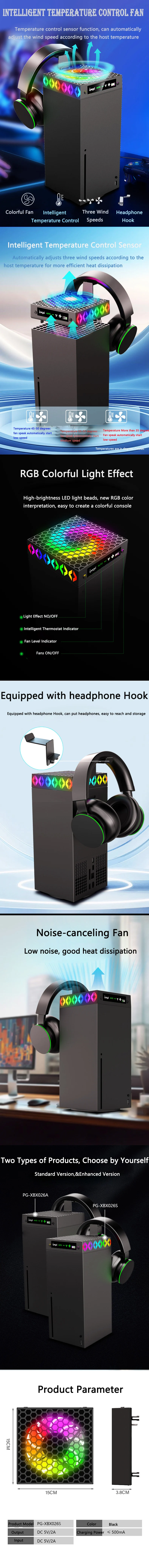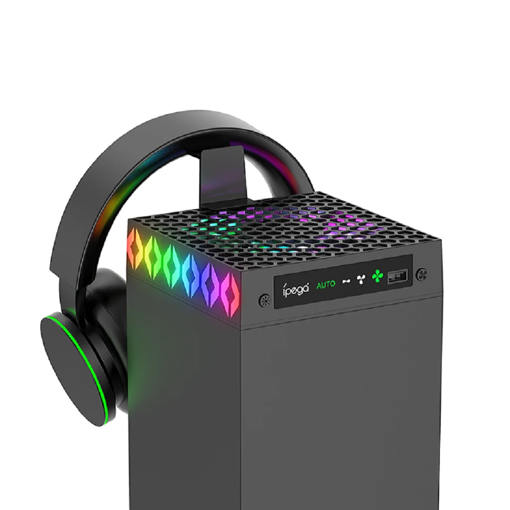Ventiladores de refrigeración IPEGA para Xbox Series X con luz RGB, ventilador que proporciona soportes de control de temperatura y almacenamiento de auriculares PG-XBX026S