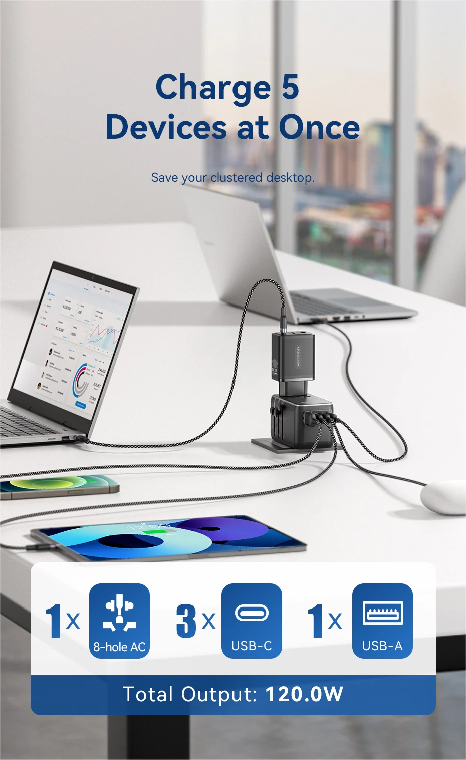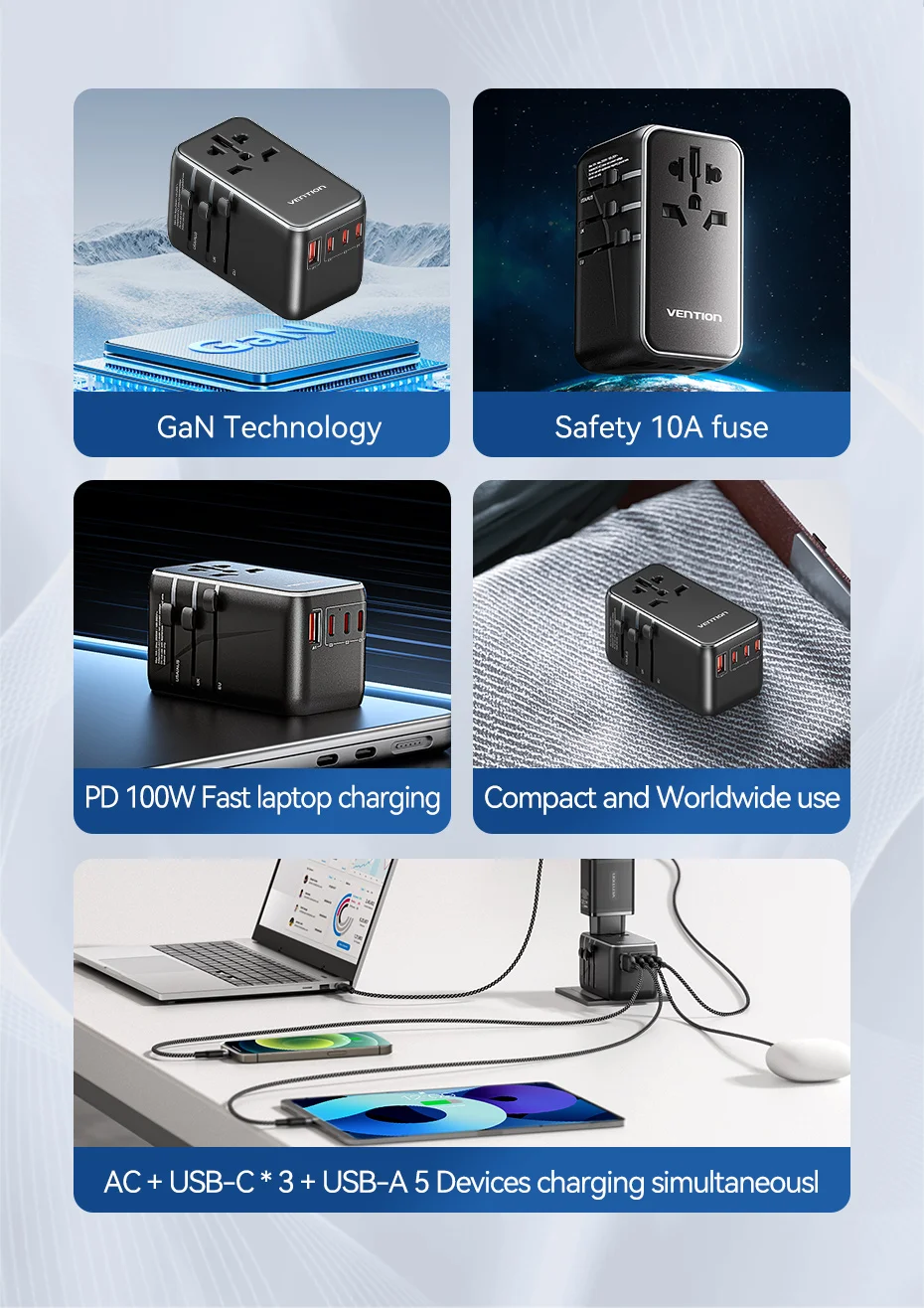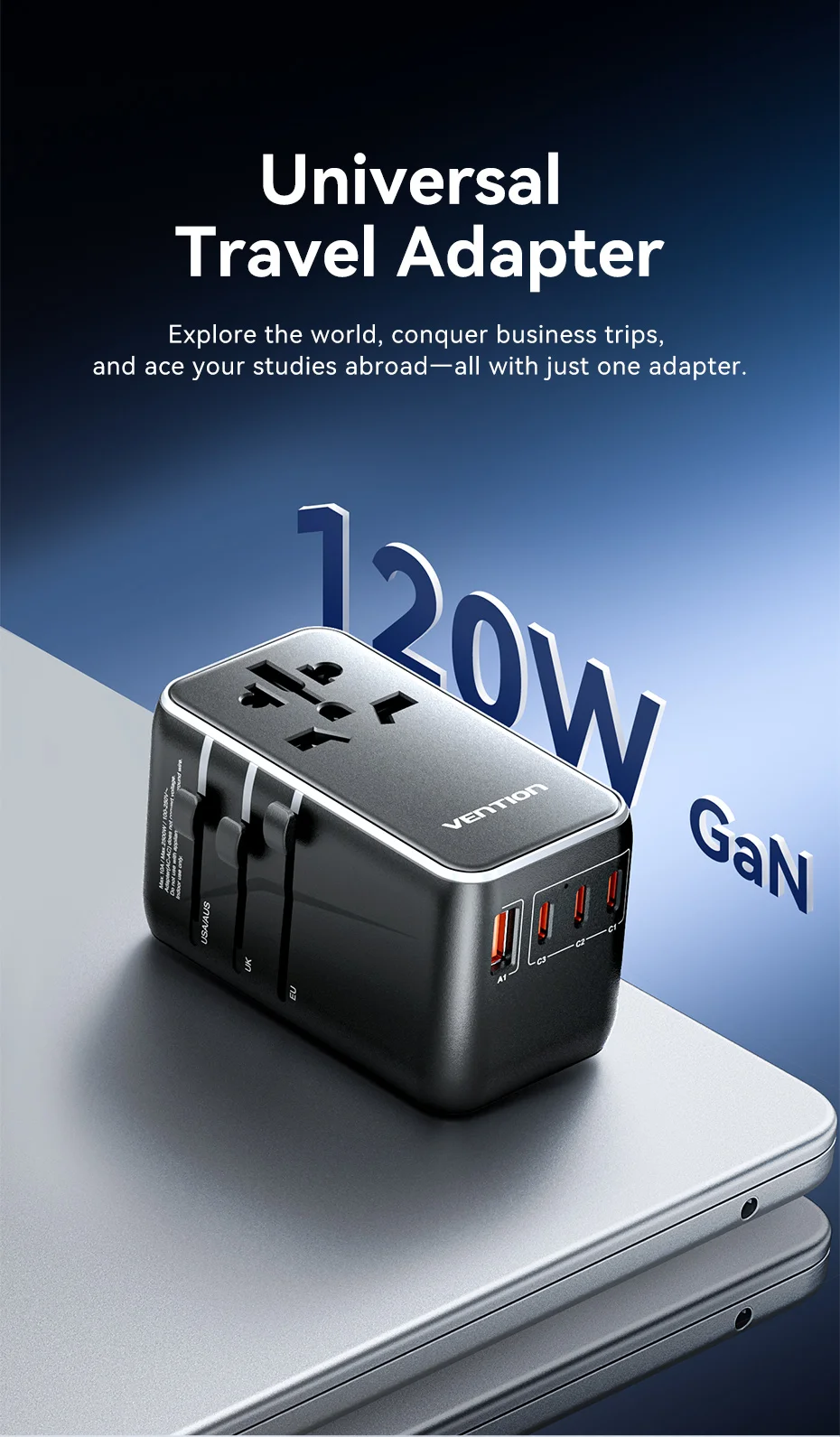 Comprar Vention 120W Adaptador de viaje universal PD 65W Todo en uno Adaptador de viaje mundial Cargador de pared Adaptador de enchufe de CA para EE. UU. UE