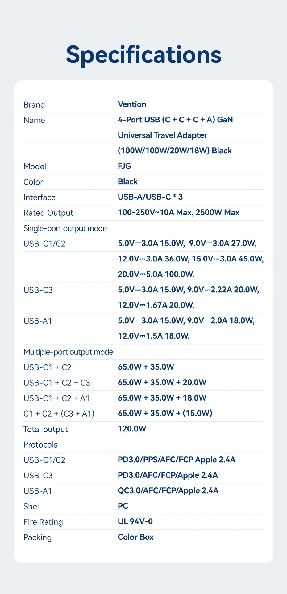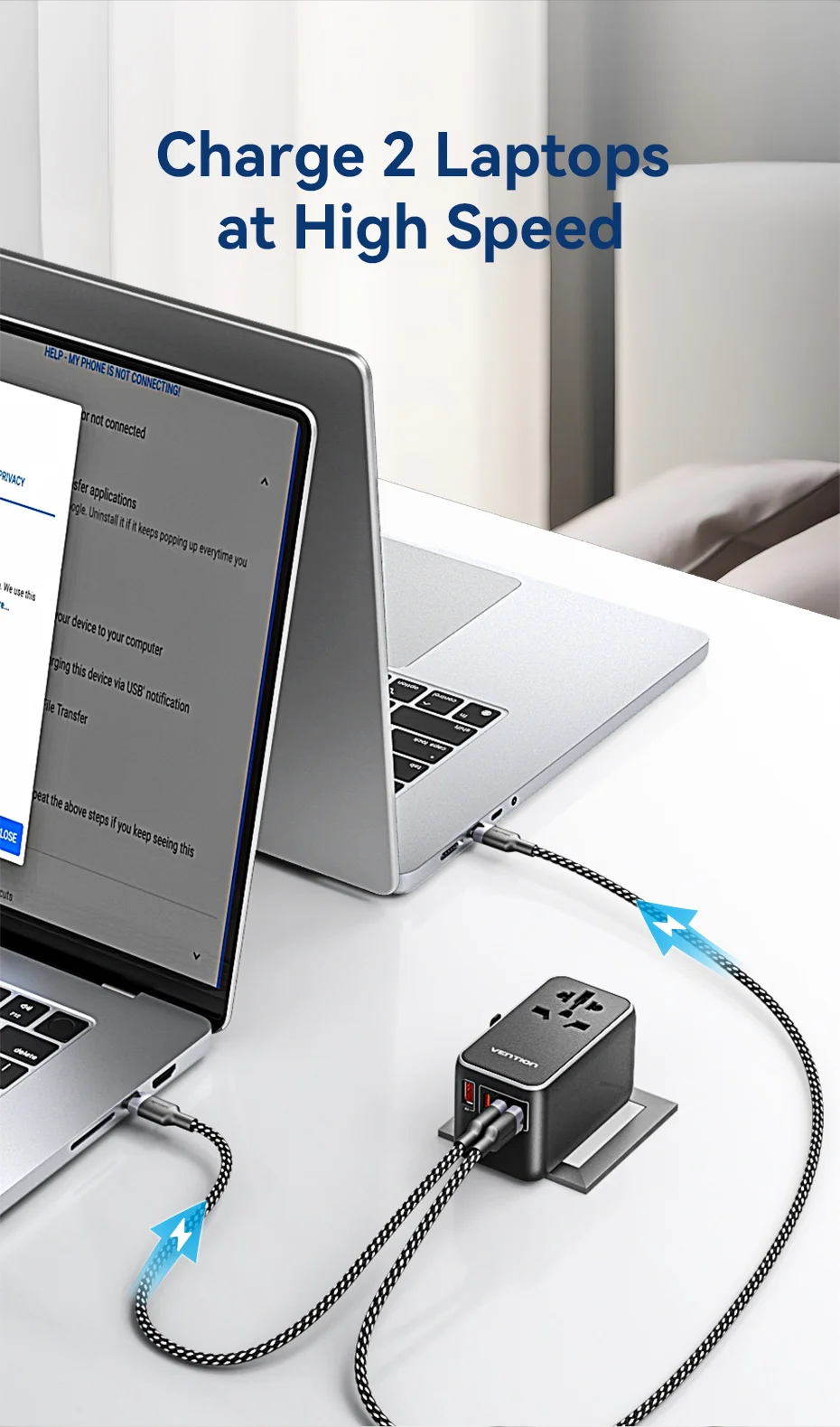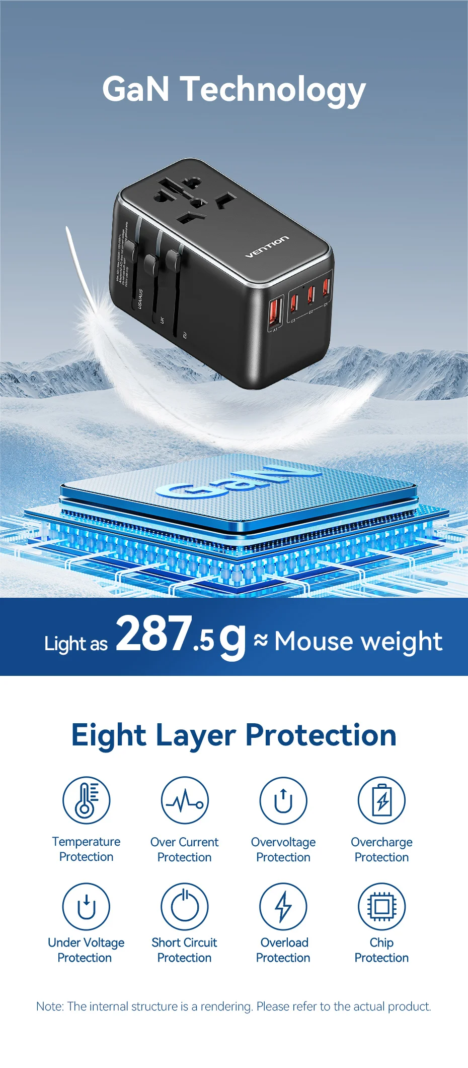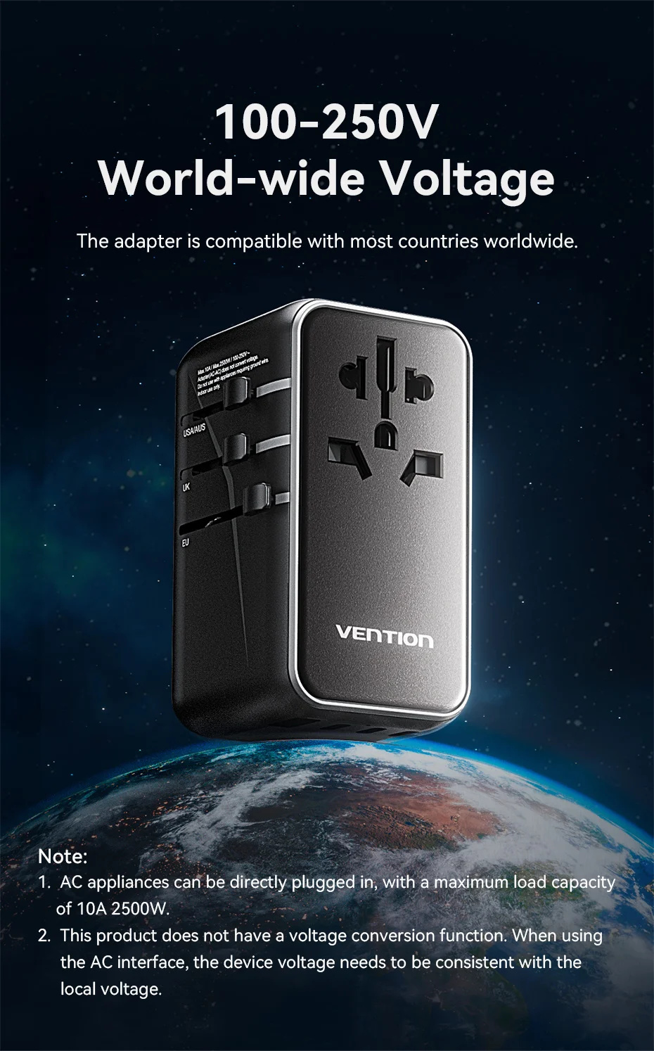 Comprar Vention 120W Adaptador de viaje universal PD 65W Todo en uno Adaptador de viaje mundial Cargador de pared Adaptador de enchufe de CA para EE. UU. UE