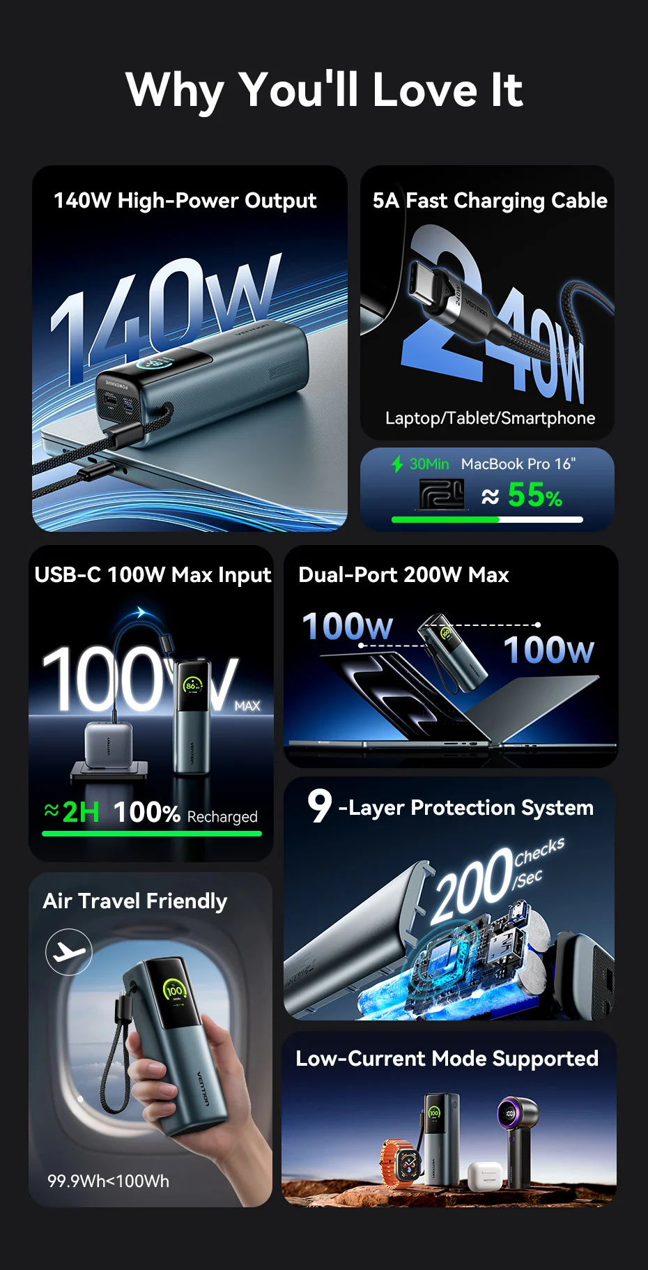 Después de 500 ciclos completos de carga y descarga, el estado de la batería permanece 80%.Dígale adiós a la ansiedad por batería baja en viajes de negocios o aventuras al aire libre.