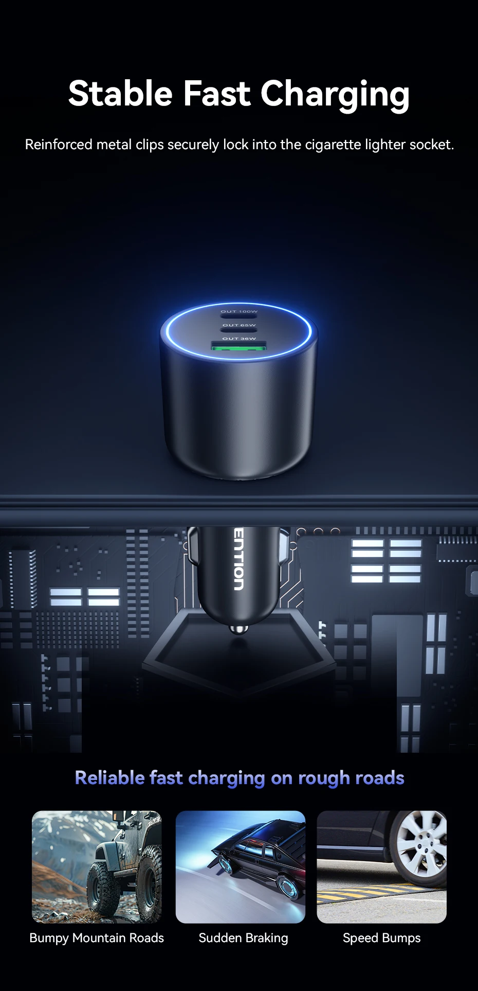 Comprar Vention 165W cargador de coche QC3.0 carga rápida PPS PD3.0 FCP AFC USB tipo C carga de teléfono de coche para iPhone 16 15 14 portátiles Samsung
