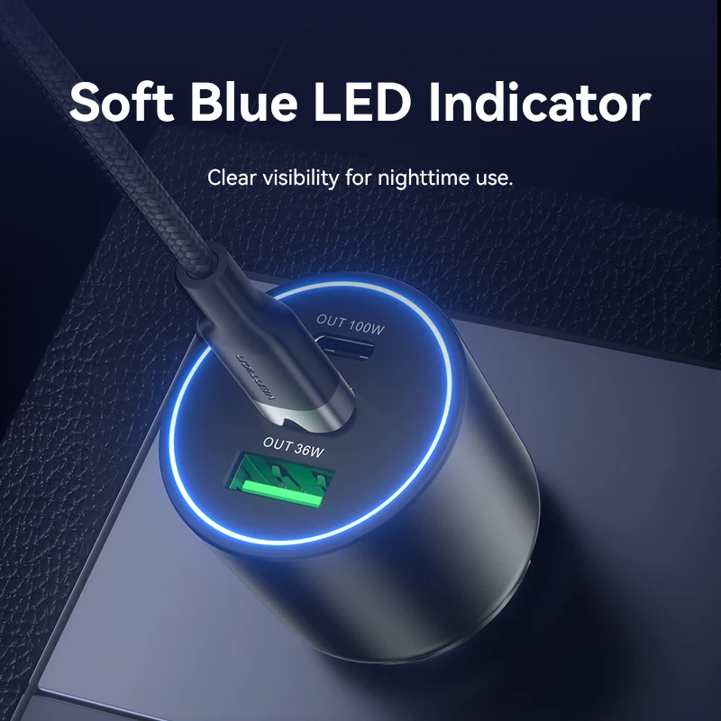 FFQ-Cargador de coche USB C+C+A de tres puertos (100W+30W+18W) tipo ABS negro
