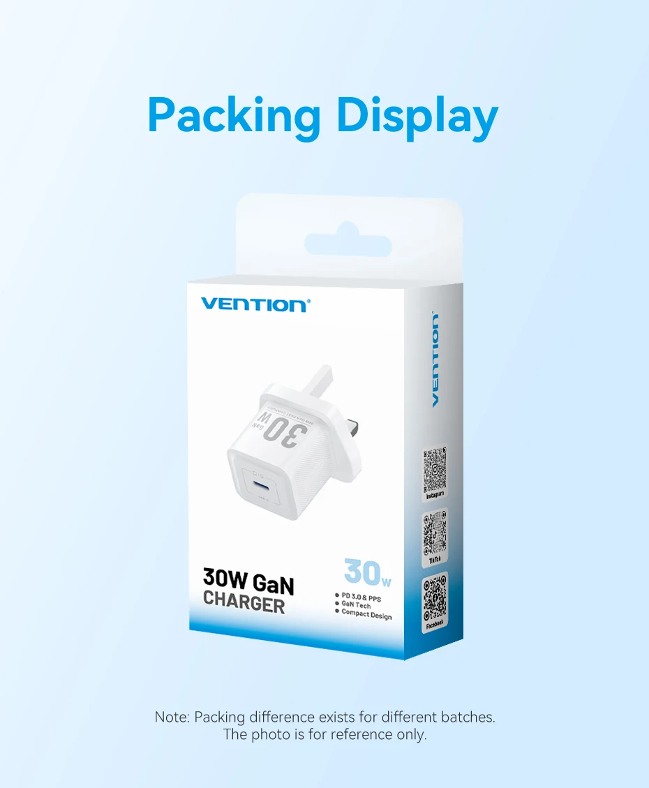 Comprar Vention 30W GaN cargador PD rápido USB tipo C cargador PD3.0 y PPS carga rápida para iPhone 16 15 14 Huawei carga de teléfono móvil