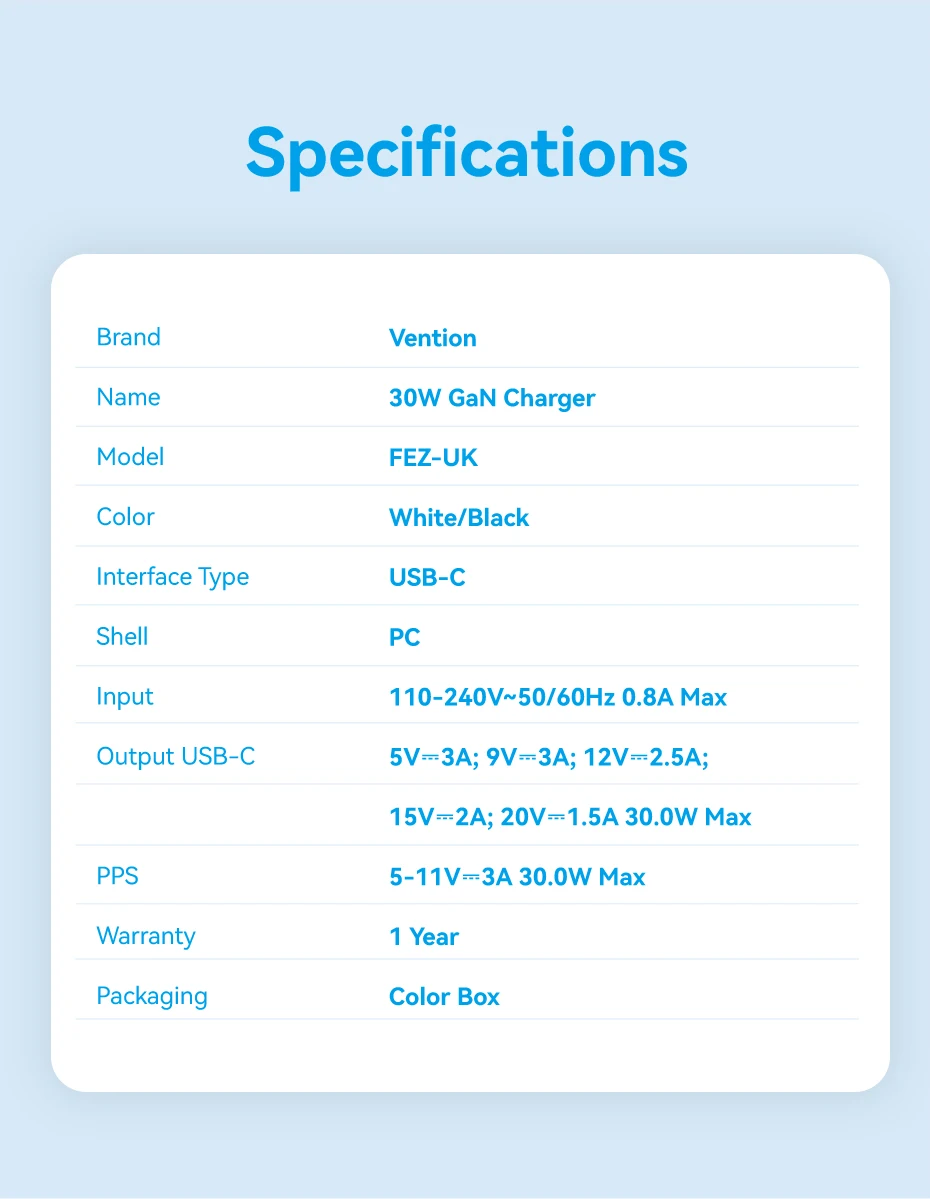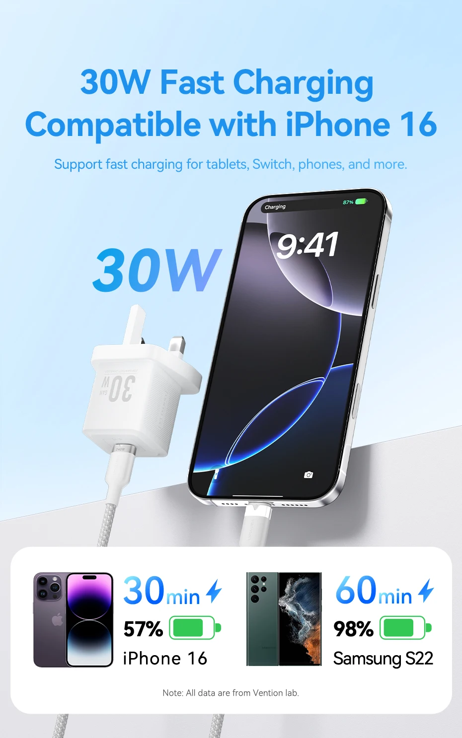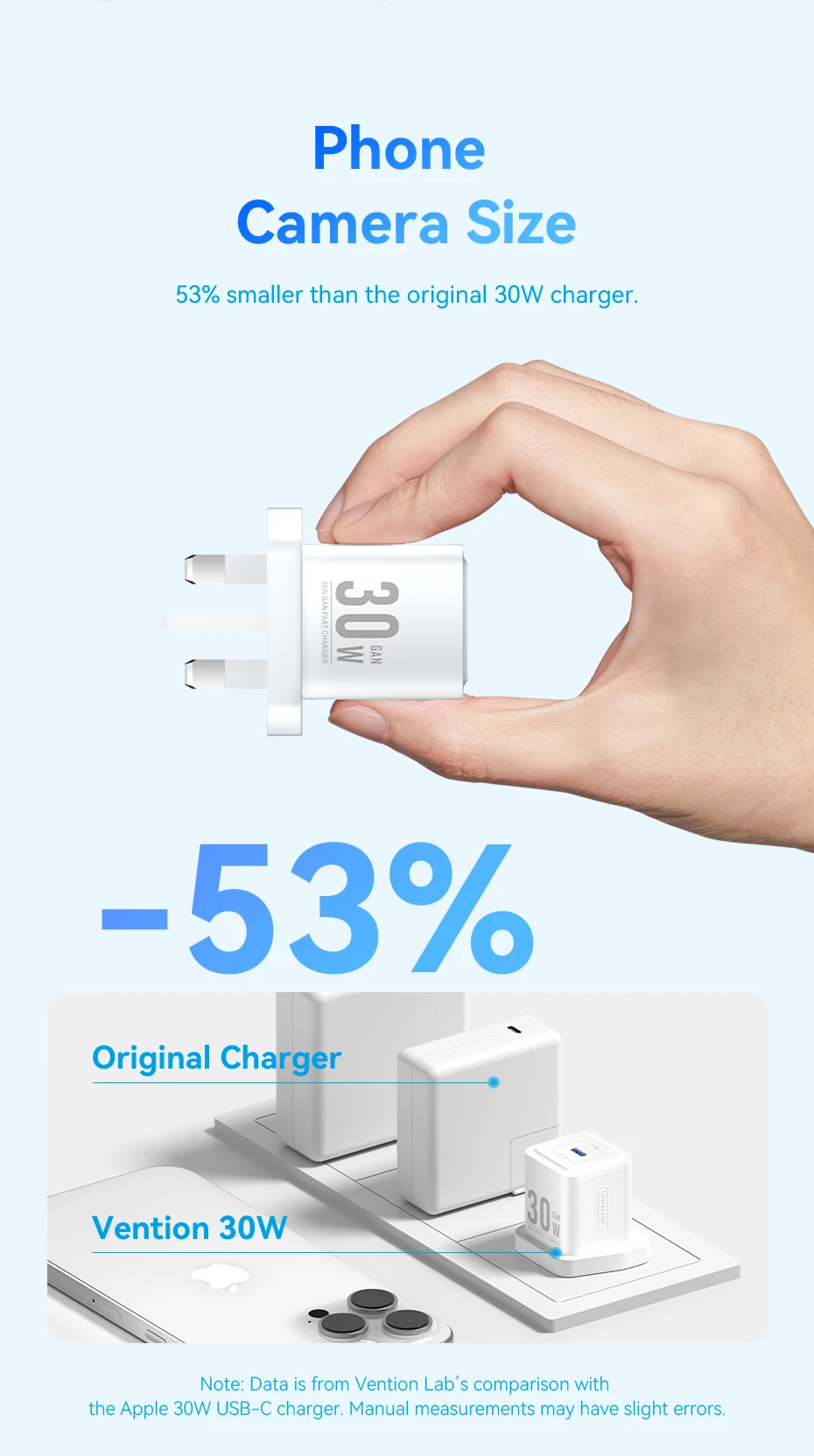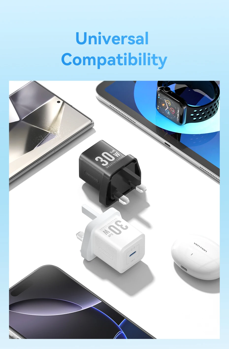 Comprar Vention 30W GaN cargador PD rápido USB tipo C cargador PD3.0 y PPS carga rápida para iPhone 16 15 14 Huawei carga de teléfono móvil
