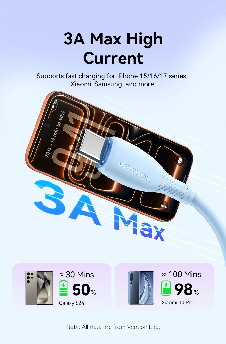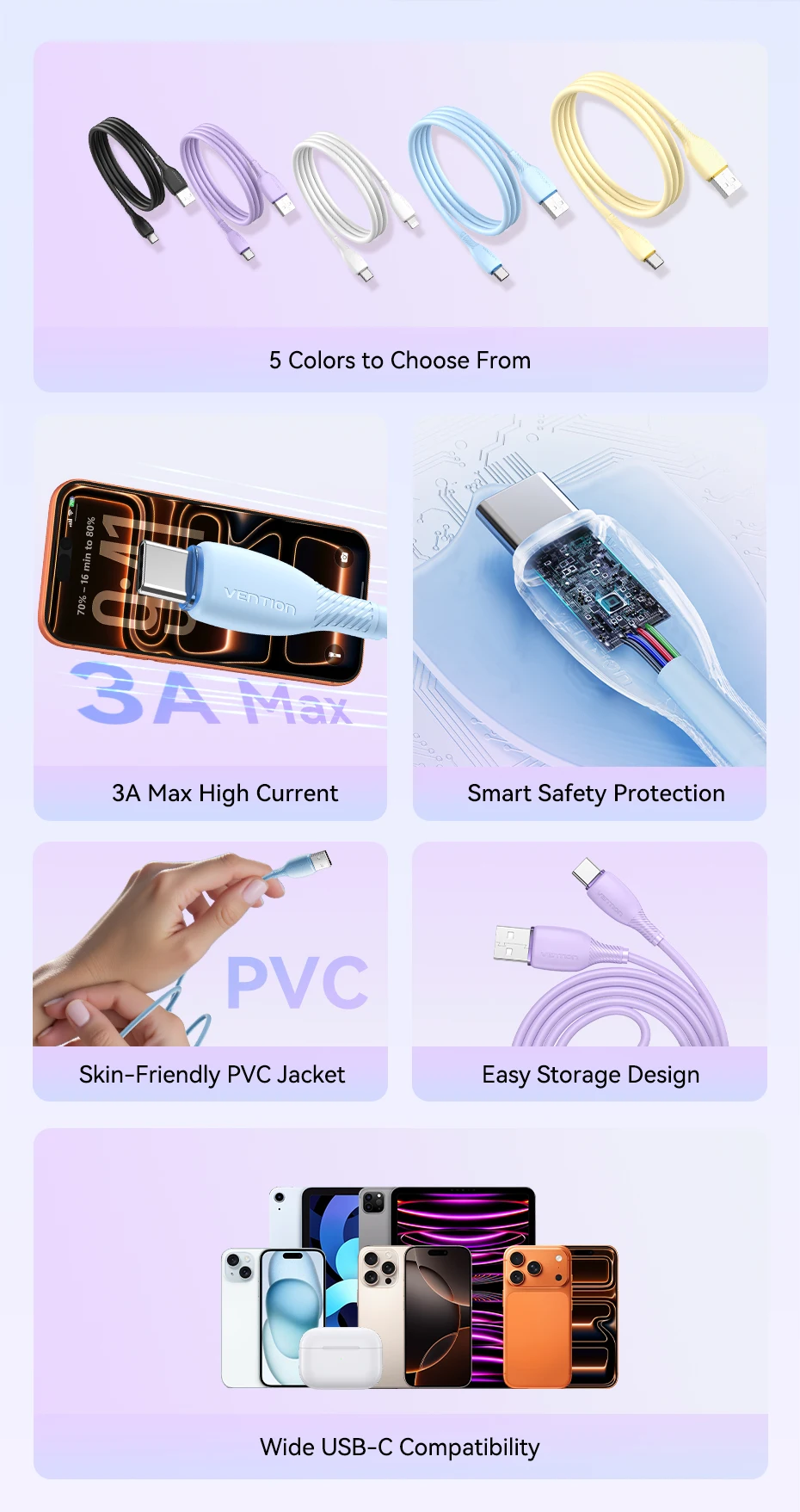Cable de carga rápida USB-A a USB-C