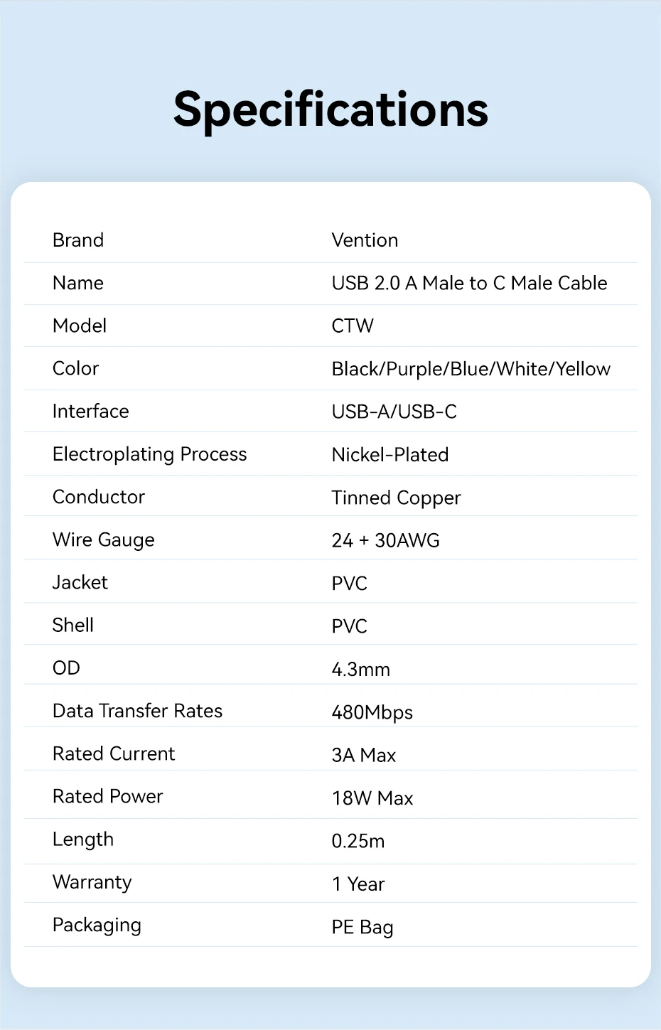 Nombre: Cable USB 2.0 A macho a C macho