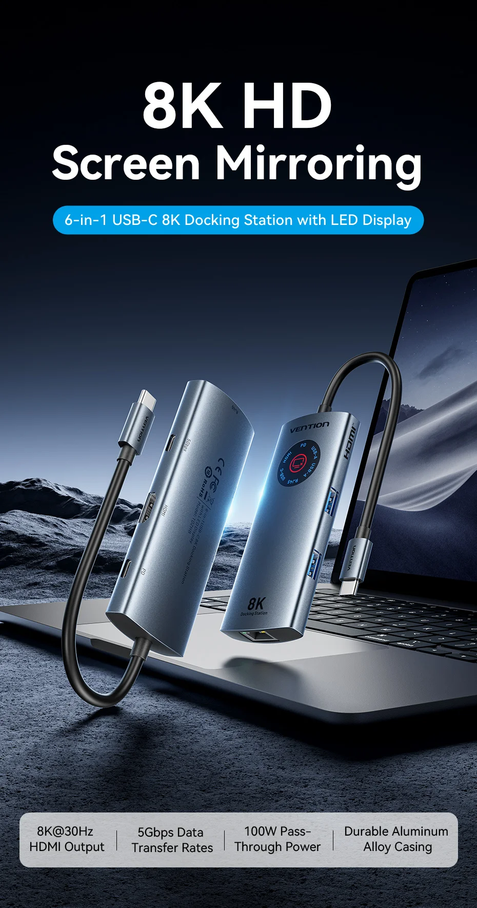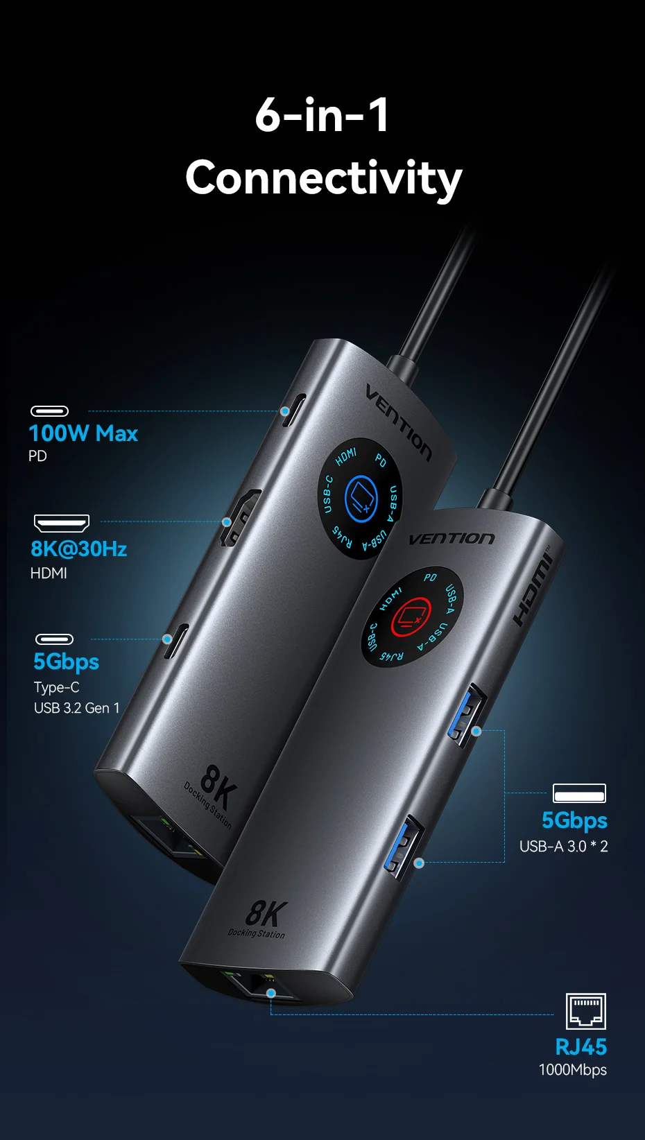 1.🖥️ Soporte de pantalla única 8K@30Hz o 4K@120Hz Calidad de imagen ultrasuave, que proporciona una experiencia visual de nivel cinematográfico para diseño profesional, edición de vídeo y juegos de alta gama.