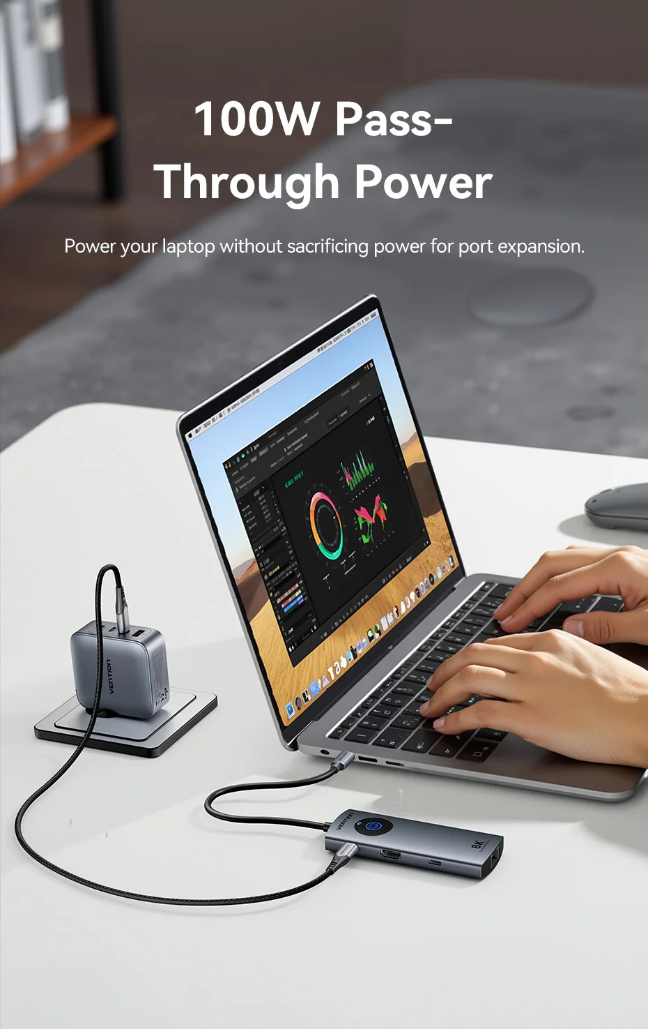 Alimente su computadora portátil sin sacrificar la energía para la expansión del puerto.