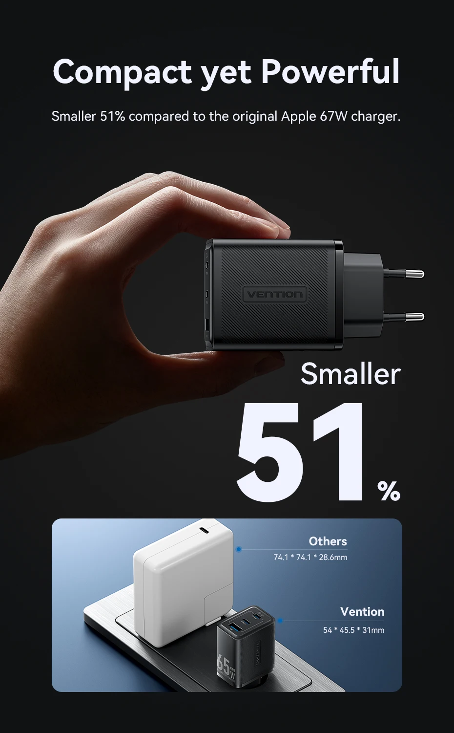 51% más pequeño en comparación con el cargador original de Apple 67W.