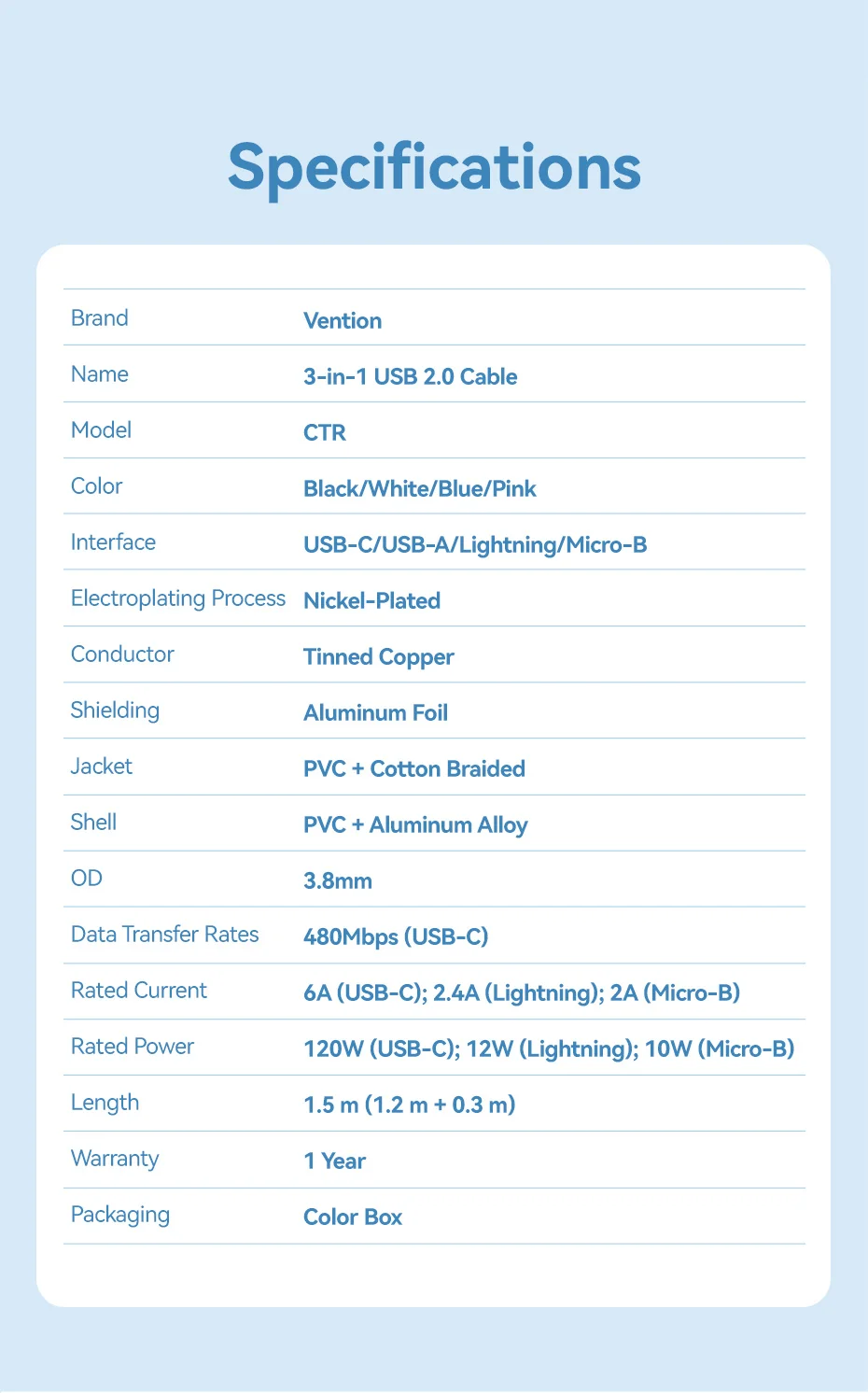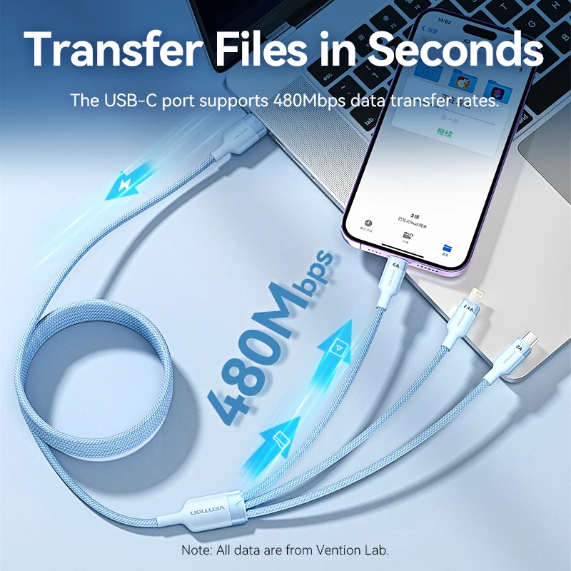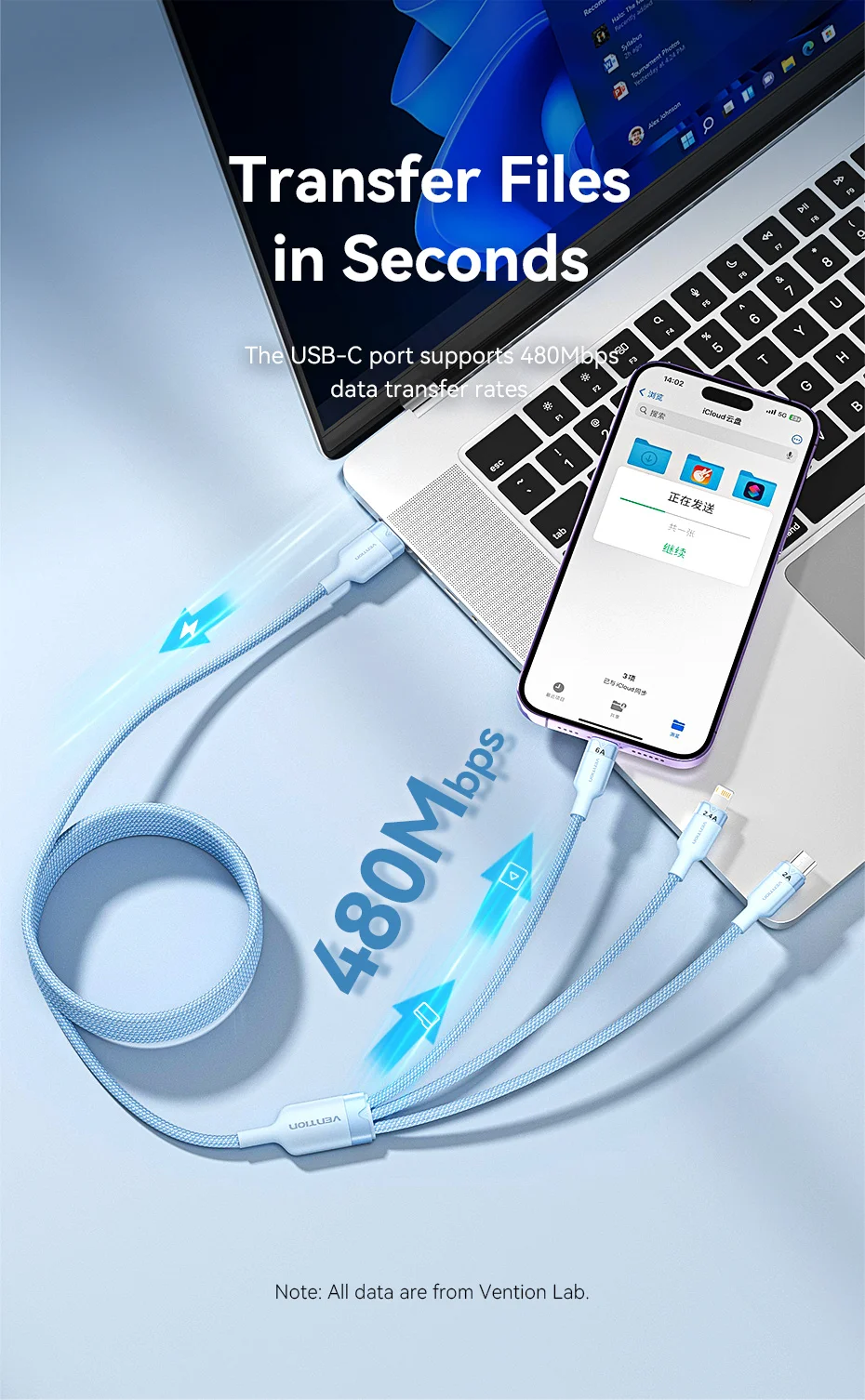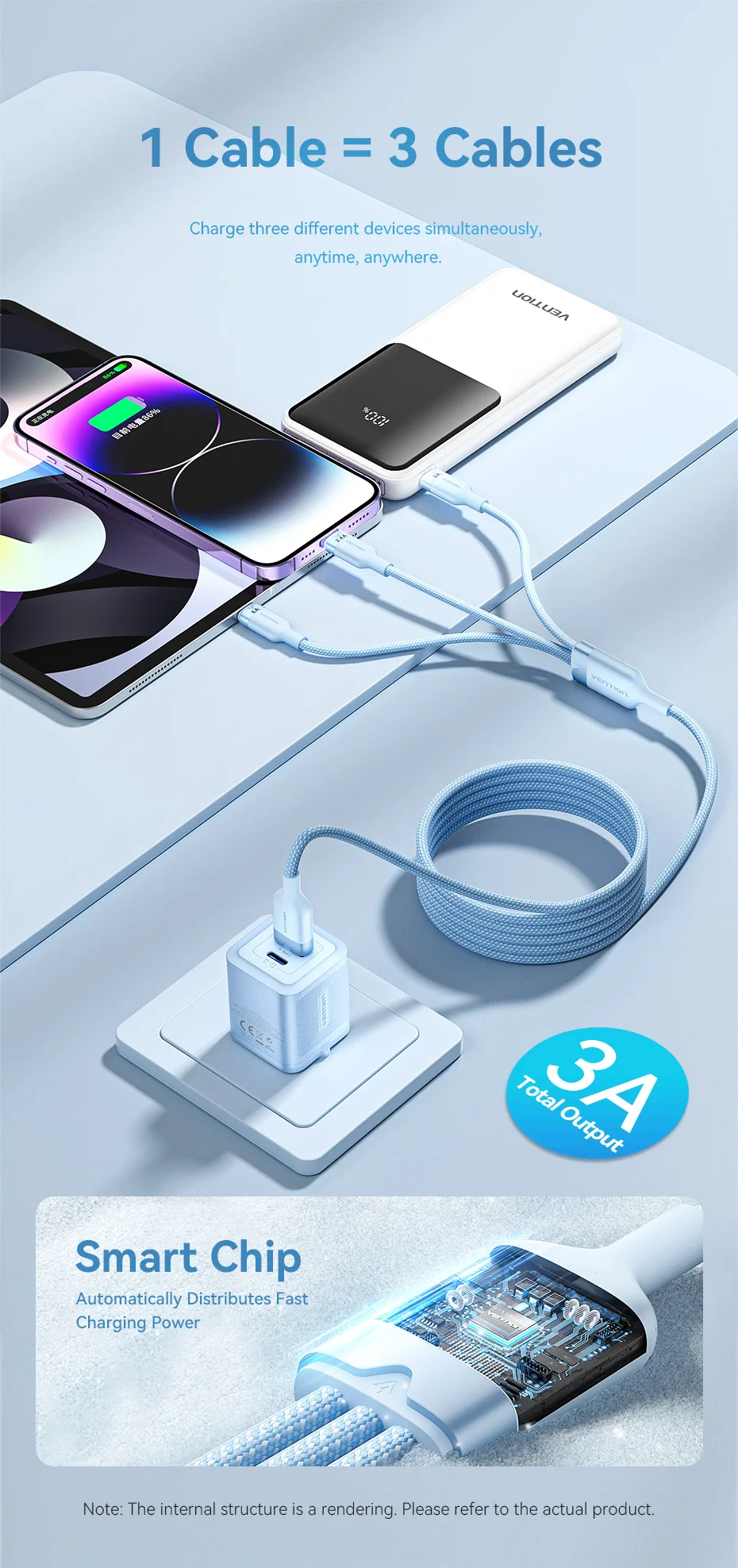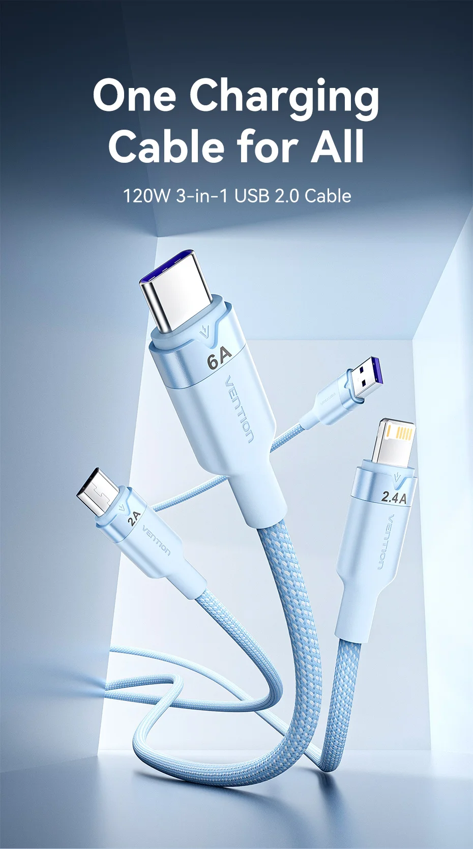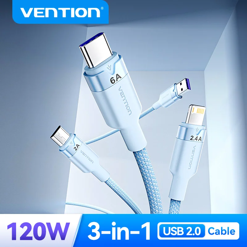 Comprar Vention 6A Cable USB tipo C para iPhone 15 14 13 12 Pro 120W 3 en 1 Cable de datos del cargador USB C para MacBook iPad Pro Samsung Xiaomi