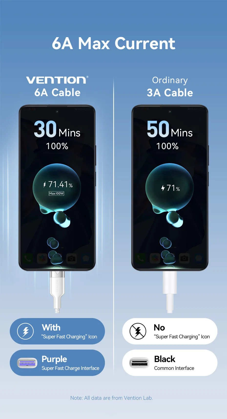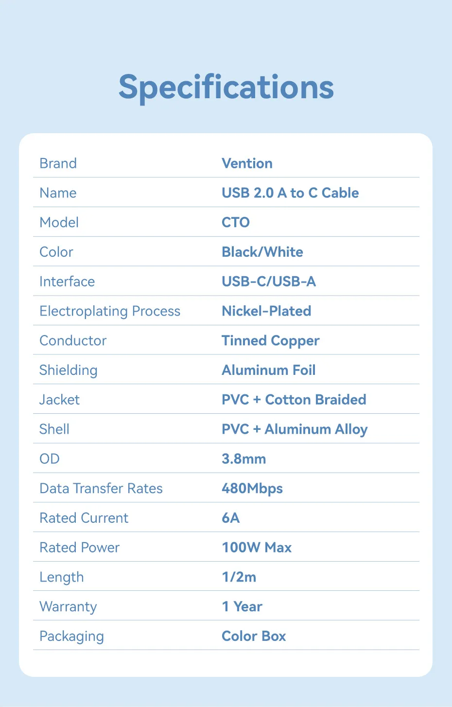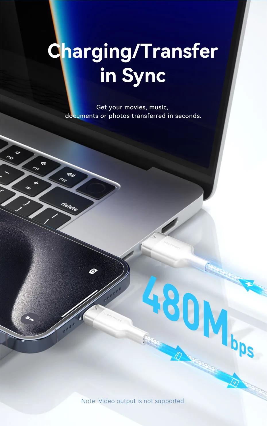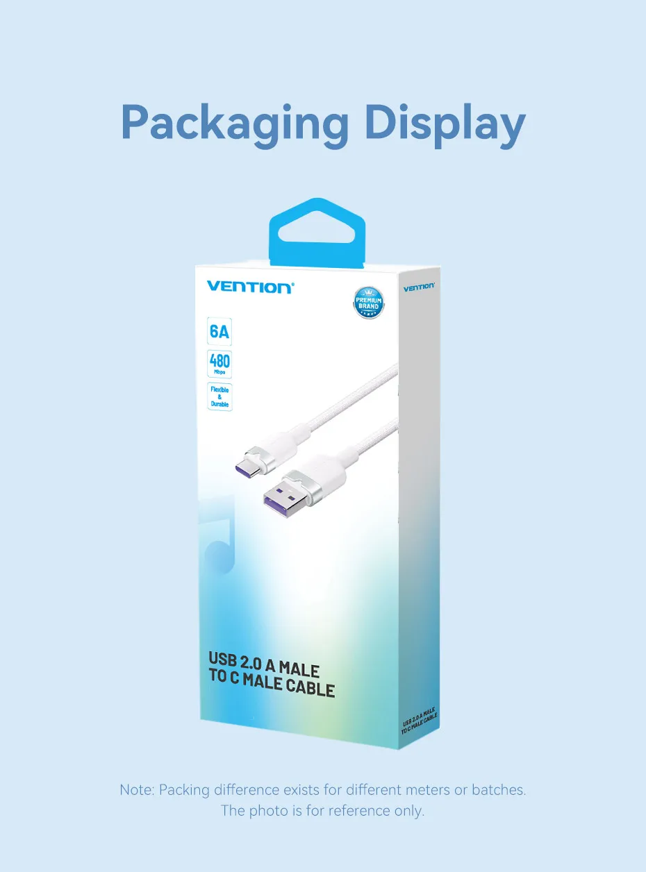Comprar Vention 6A Cable USB tipo C para iPhone 16 15 14 Pro Cable de datos del cargador para MacBook iPad Pro Samsung Xiaomi Cable USB C rápido de 100W