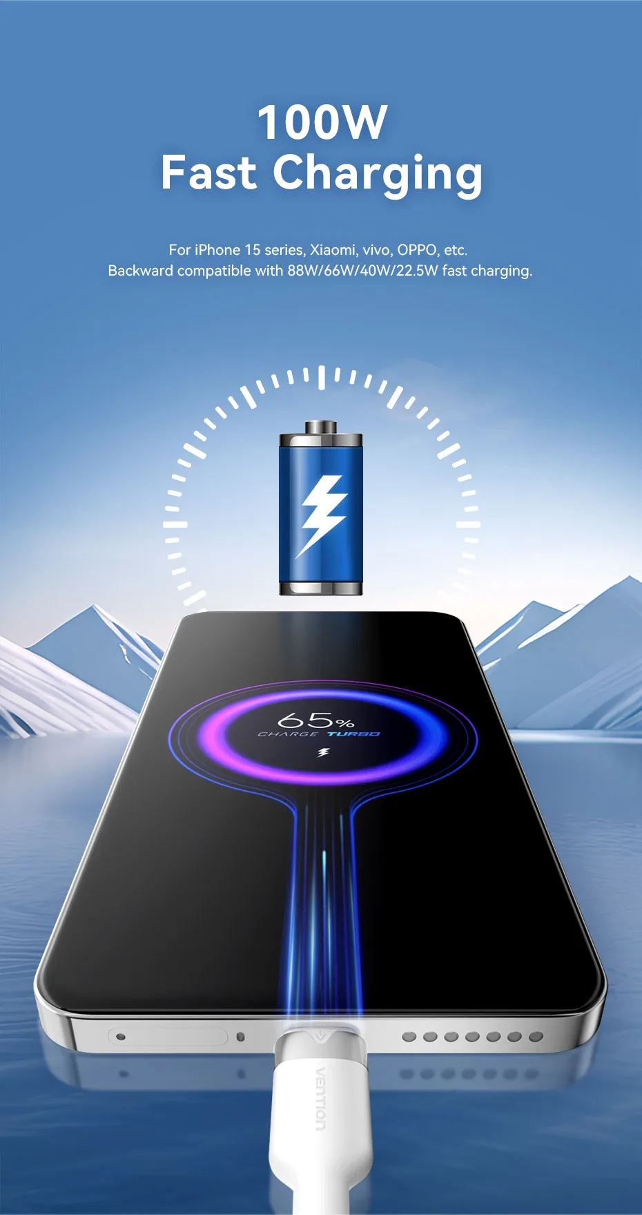 Comprar Vention 6A Cable USB tipo C para iPhone 16 15 14 Pro Cable de datos del cargador para MacBook iPad Pro Samsung Xiaomi Cable USB C rápido de 100W