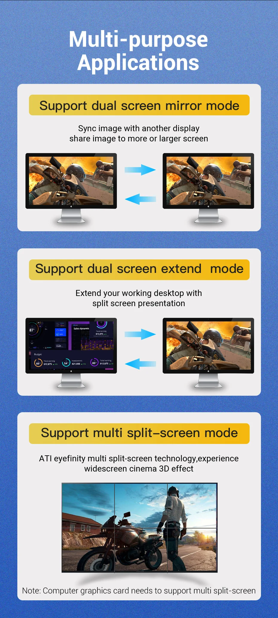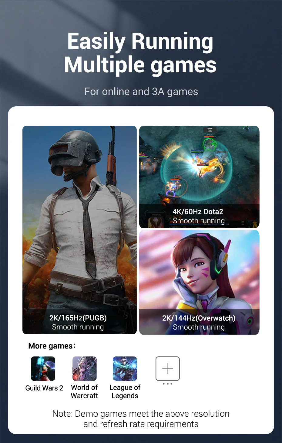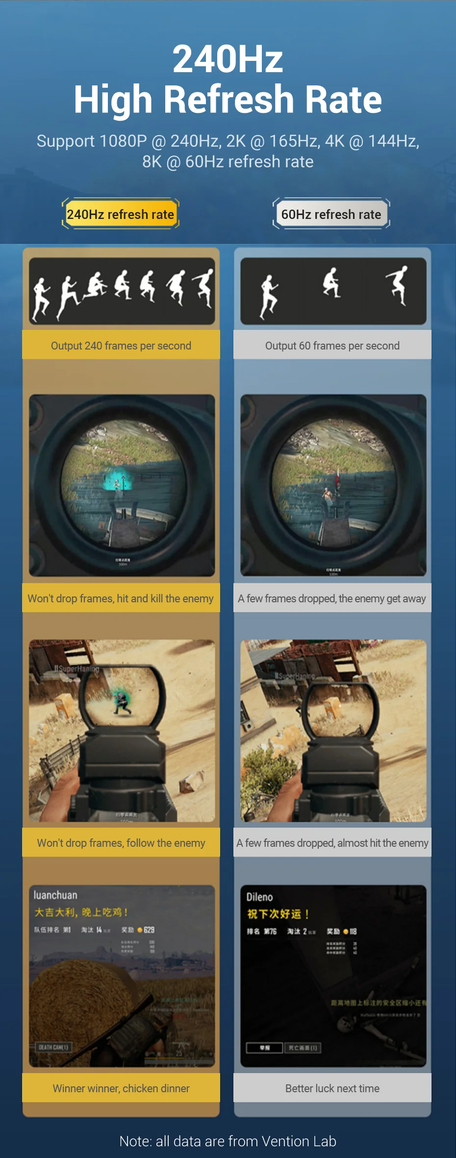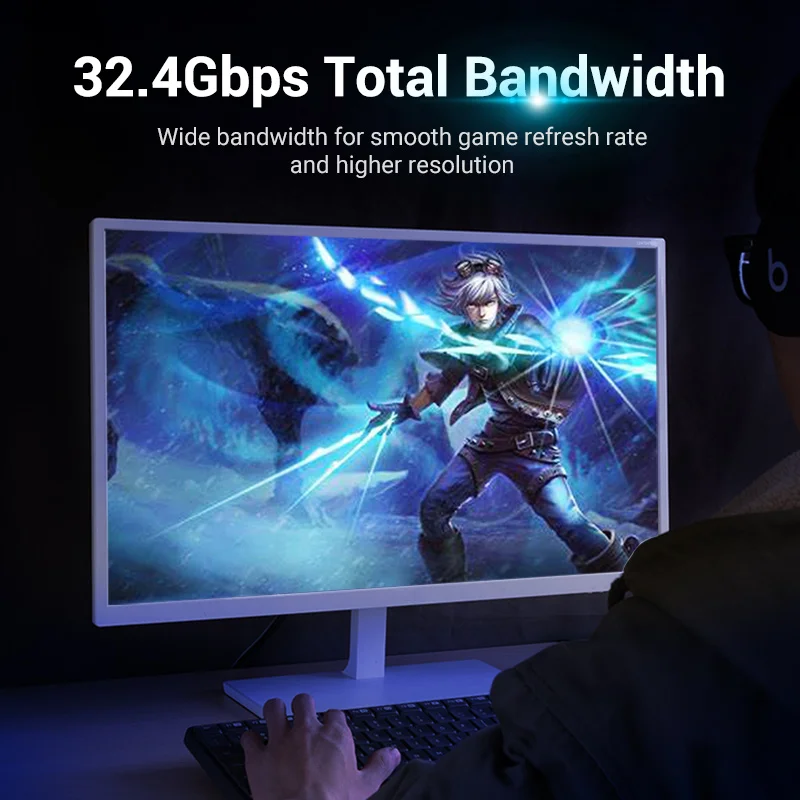 Admite 1080P@240Hz,2K@165Hz,4K@144Hz, frecuencia de actualización de 8K@60Hz