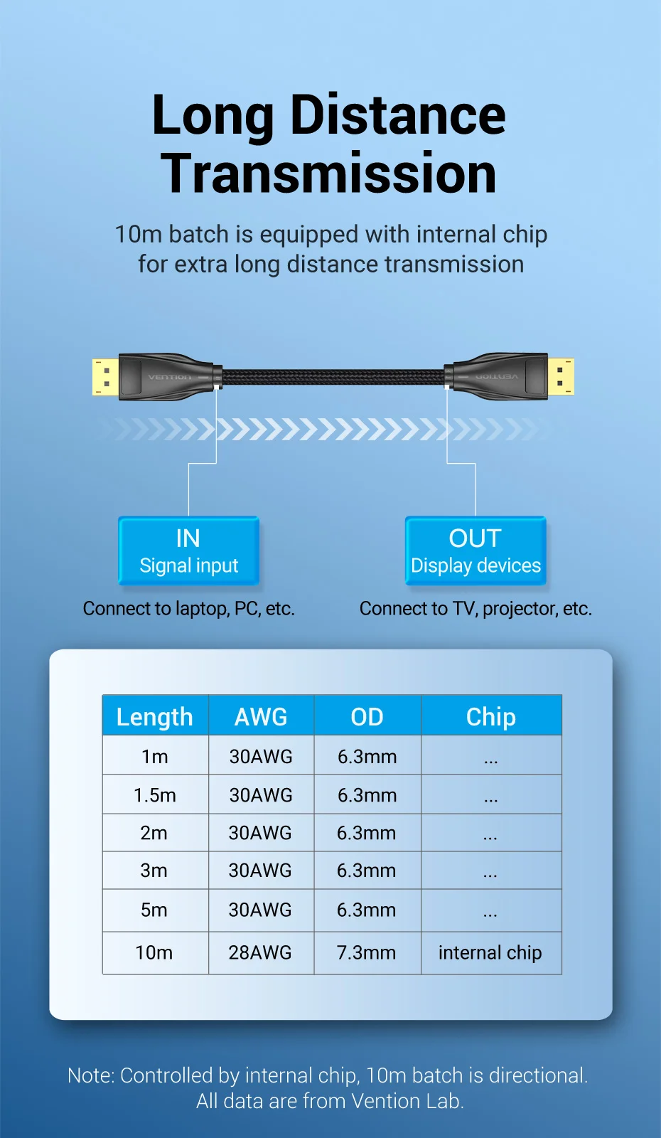 El lote de 10 m está equipado con un chip interno para transmisión de distancias extra largas