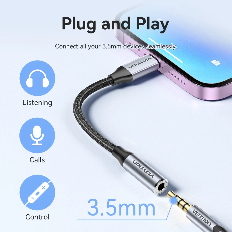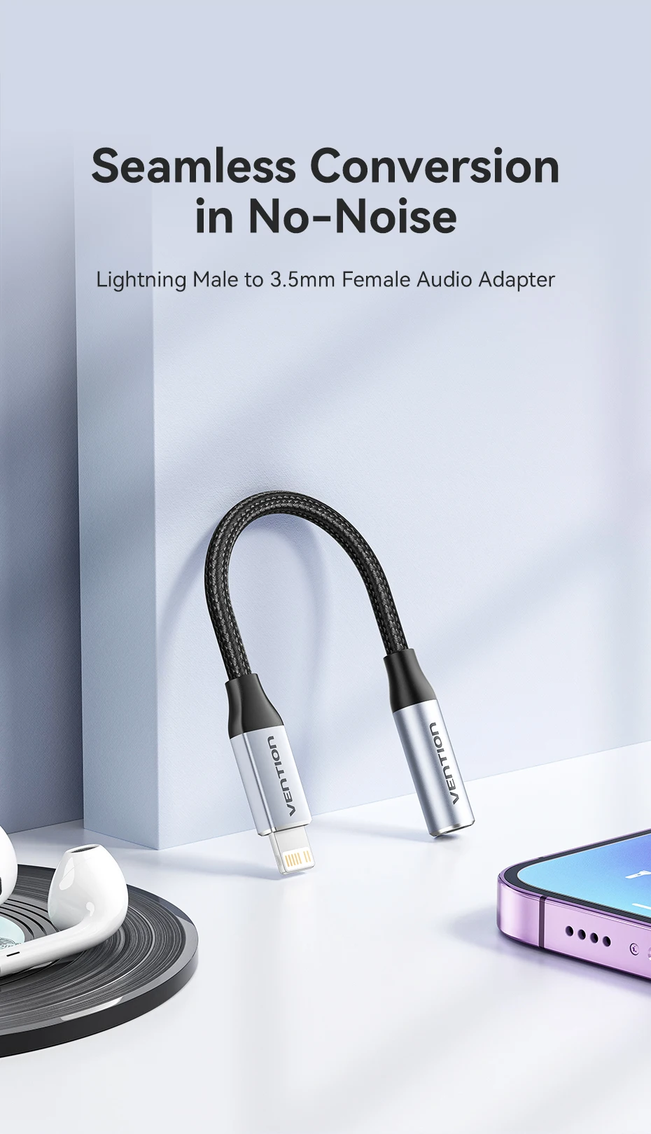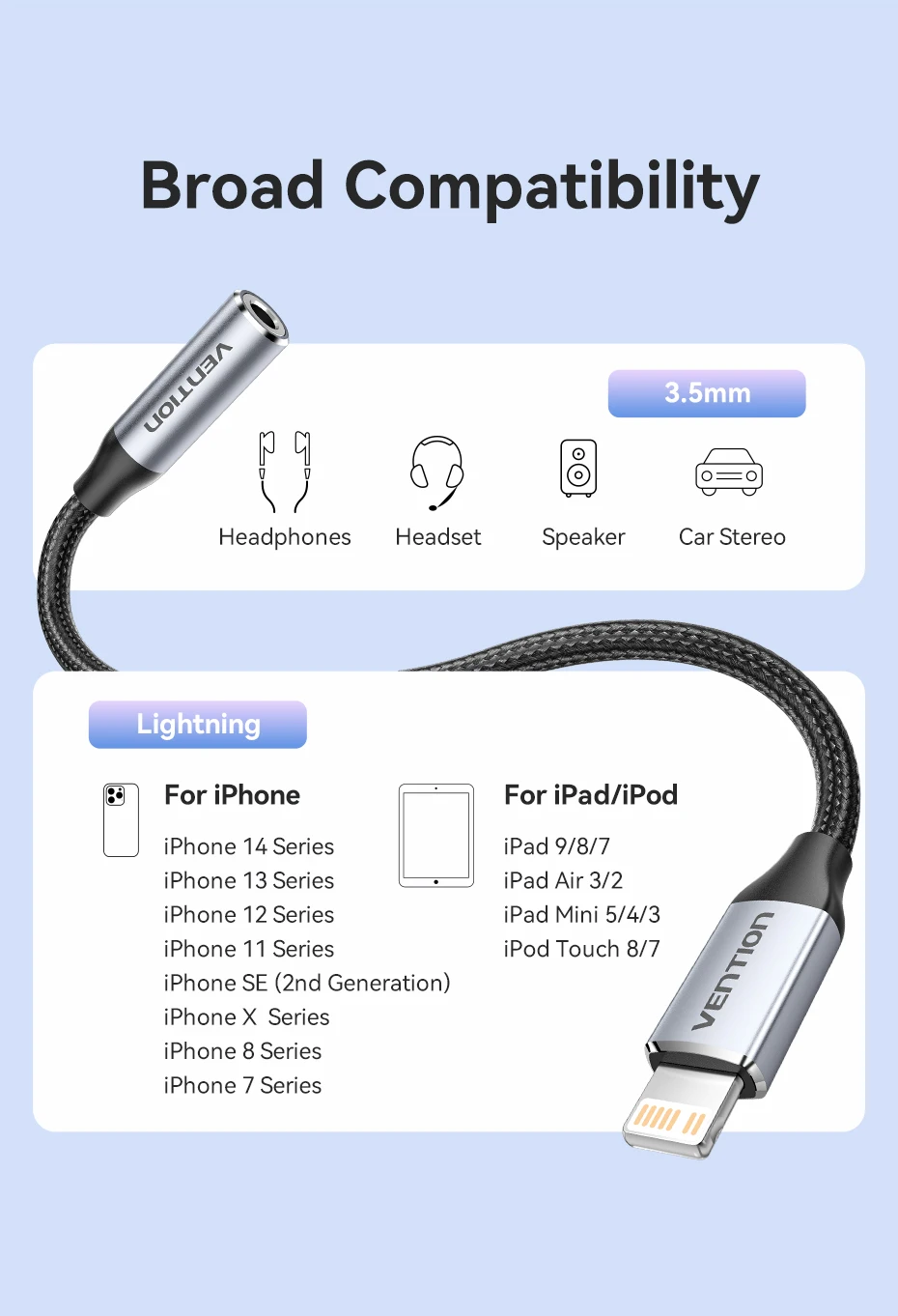 Comprar Vention-Adaptador de auriculares DAC Lightning a 3,5mm, Cable auxiliar OMTP para iPhone 14, 12 Pro max, xr, accesorios de teléfono