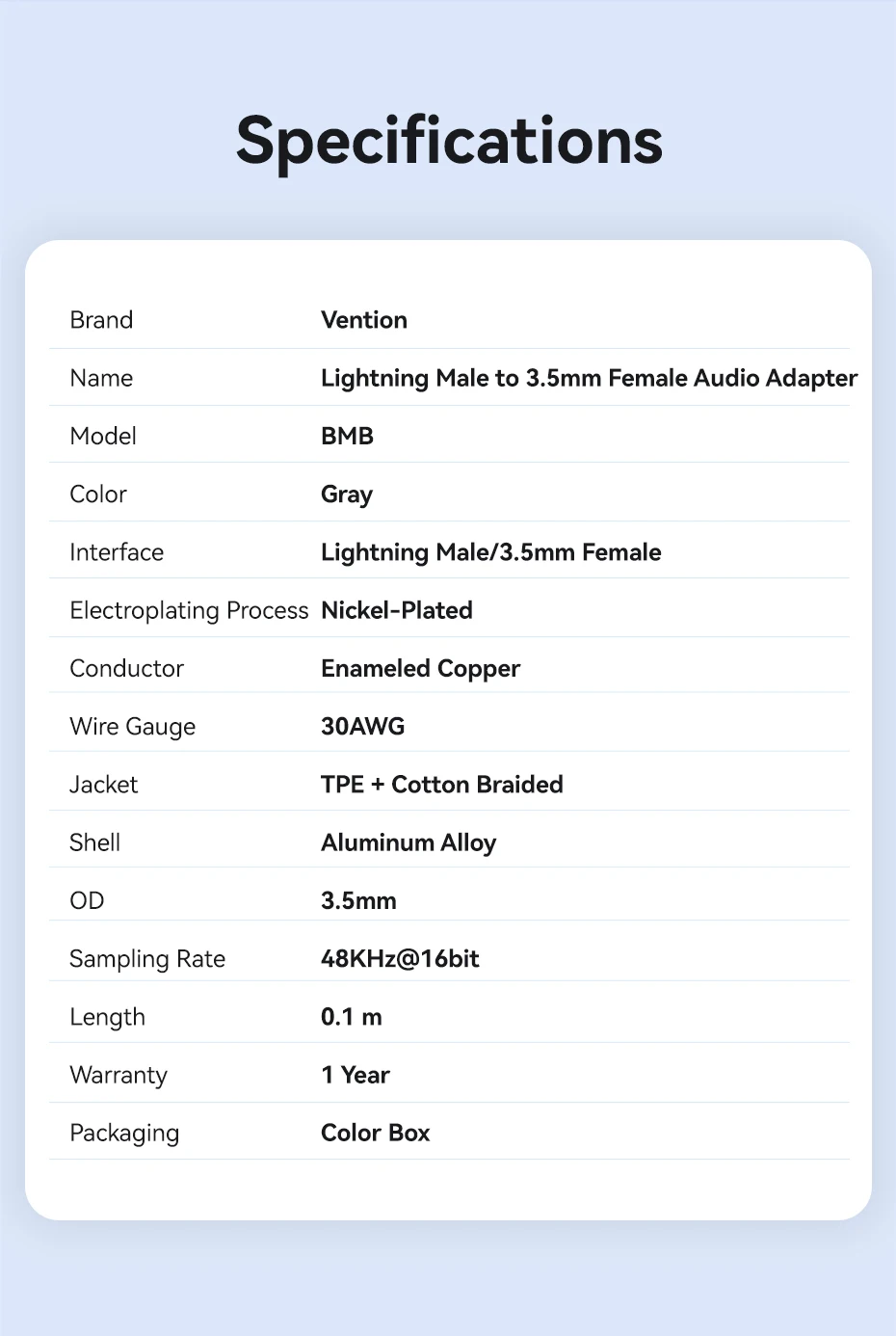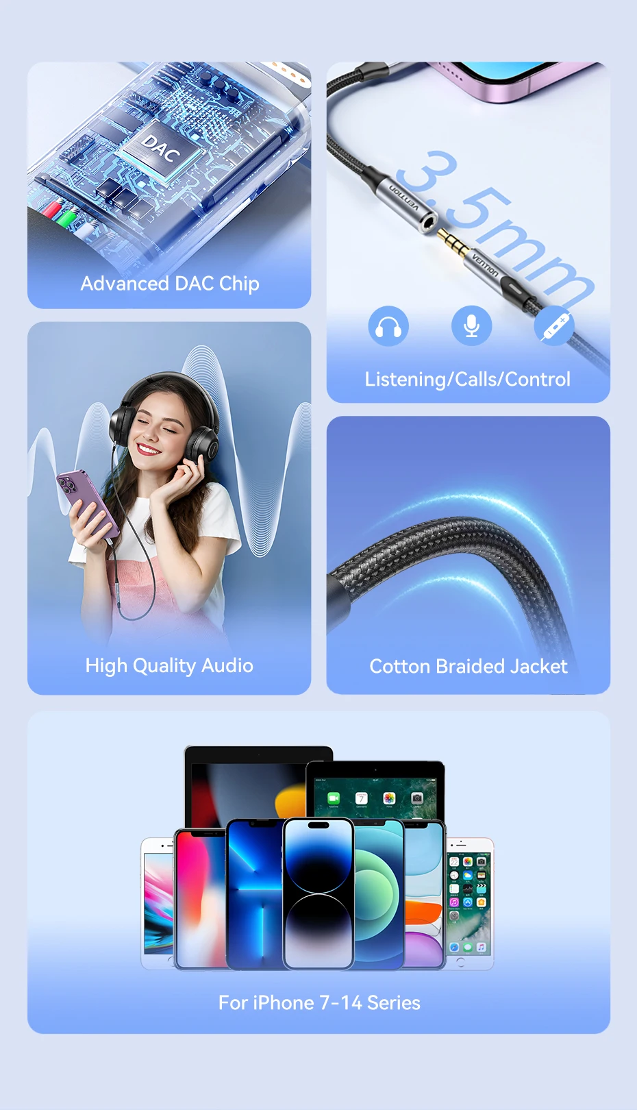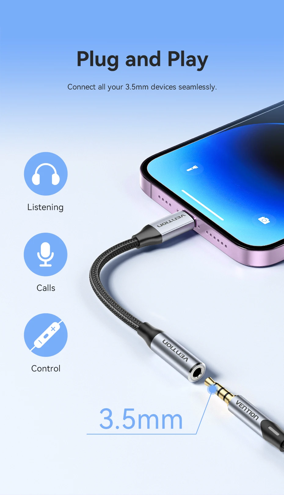 Comprar Vention-Adaptador de auriculares DAC Lightning a 3,5mm, Cable auxiliar OMTP para iPhone 14, 12 Pro max, xr, accesorios de teléfono