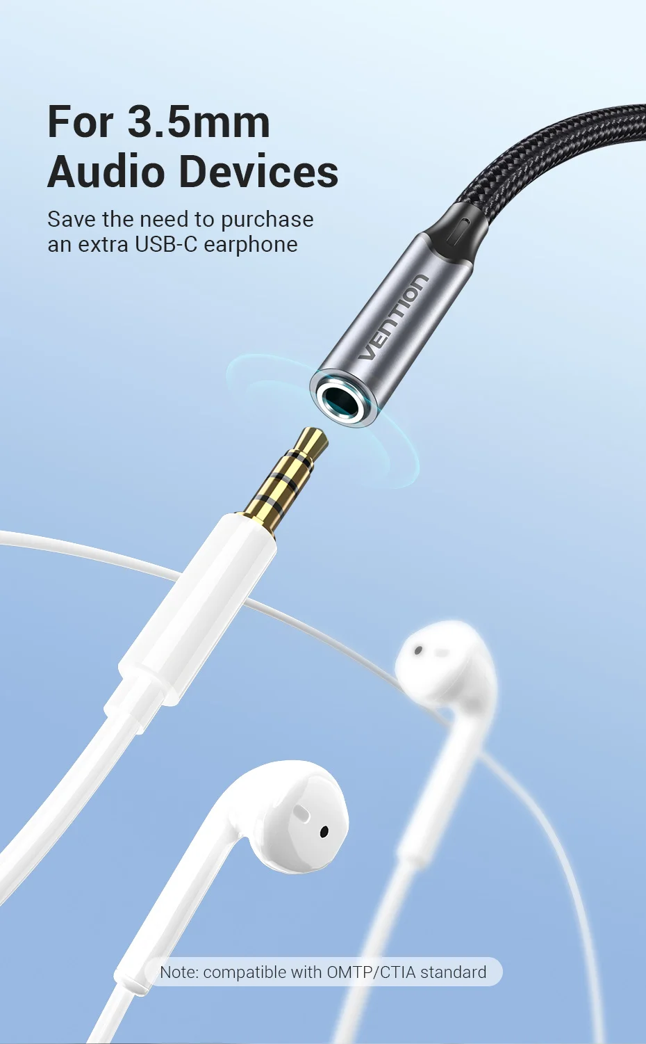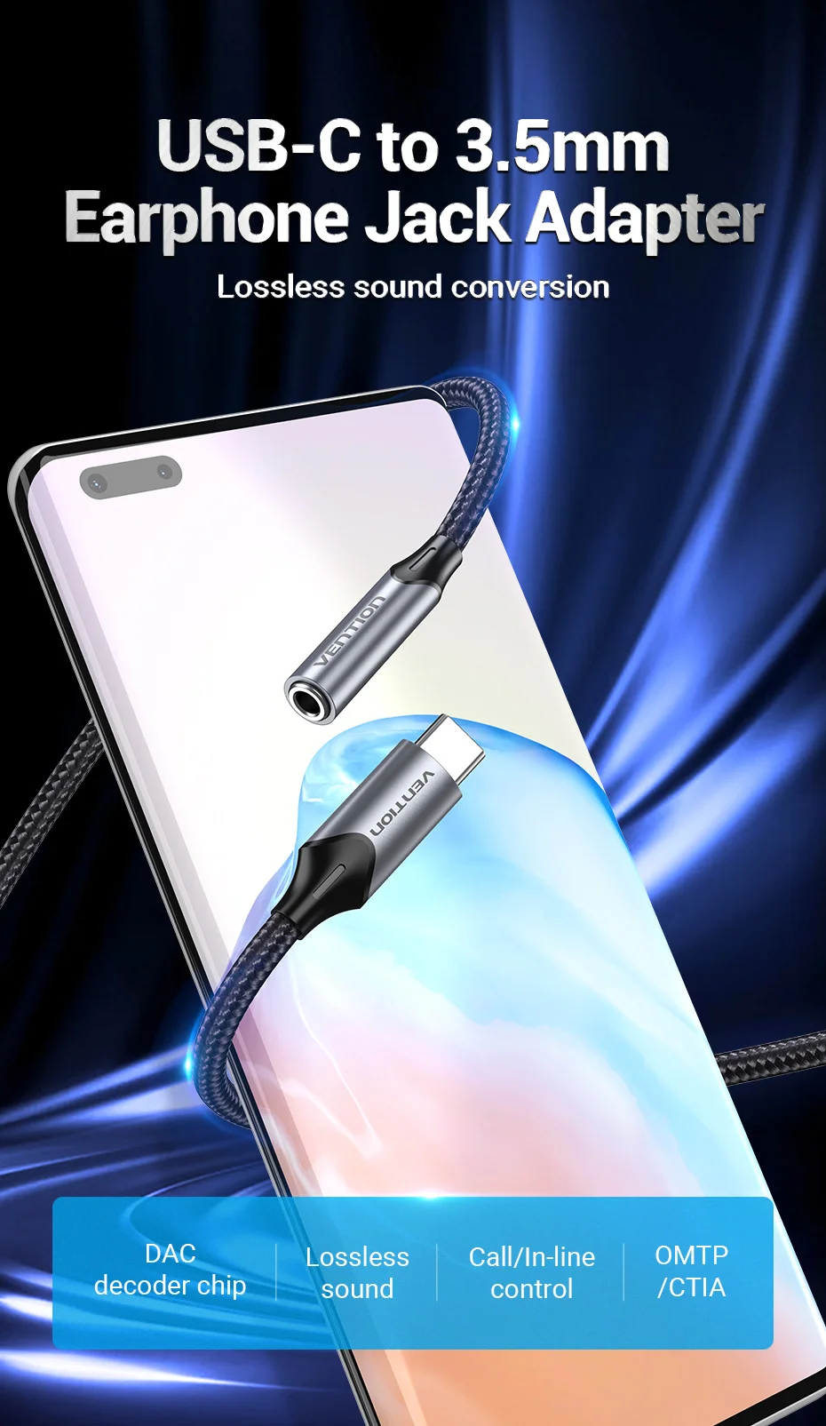 Comprar Vention-Adaptador de auriculares USB tipo C a Chip DAC de 3,5mm, Cable auxiliar USB C a 3,5 para PC, iPhone 15 Pro Max, Macbook, Samsung Galaxy