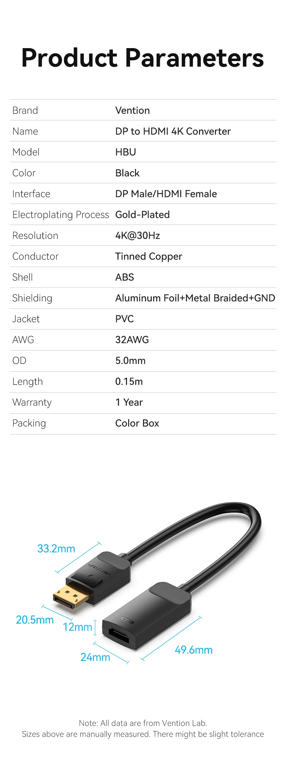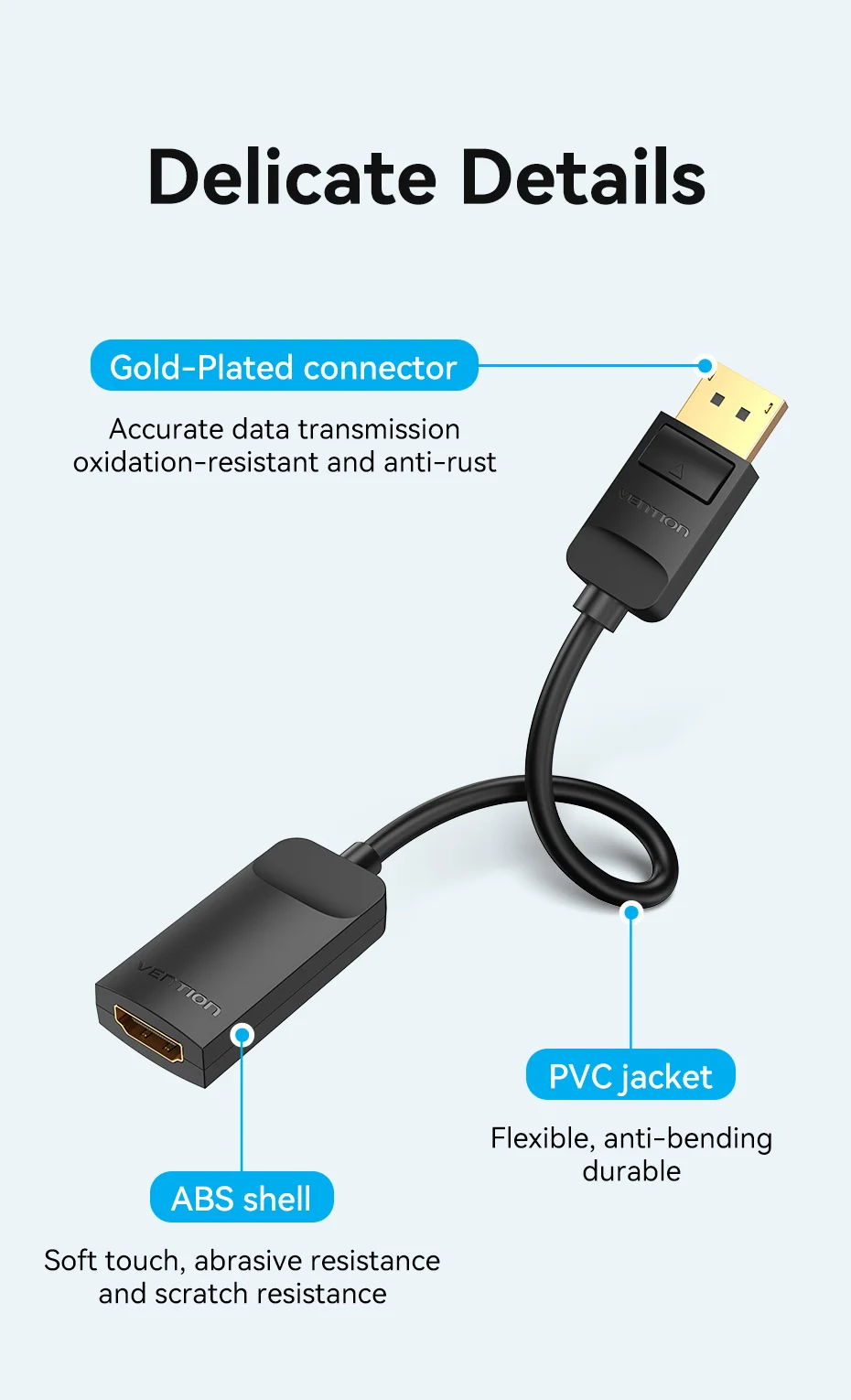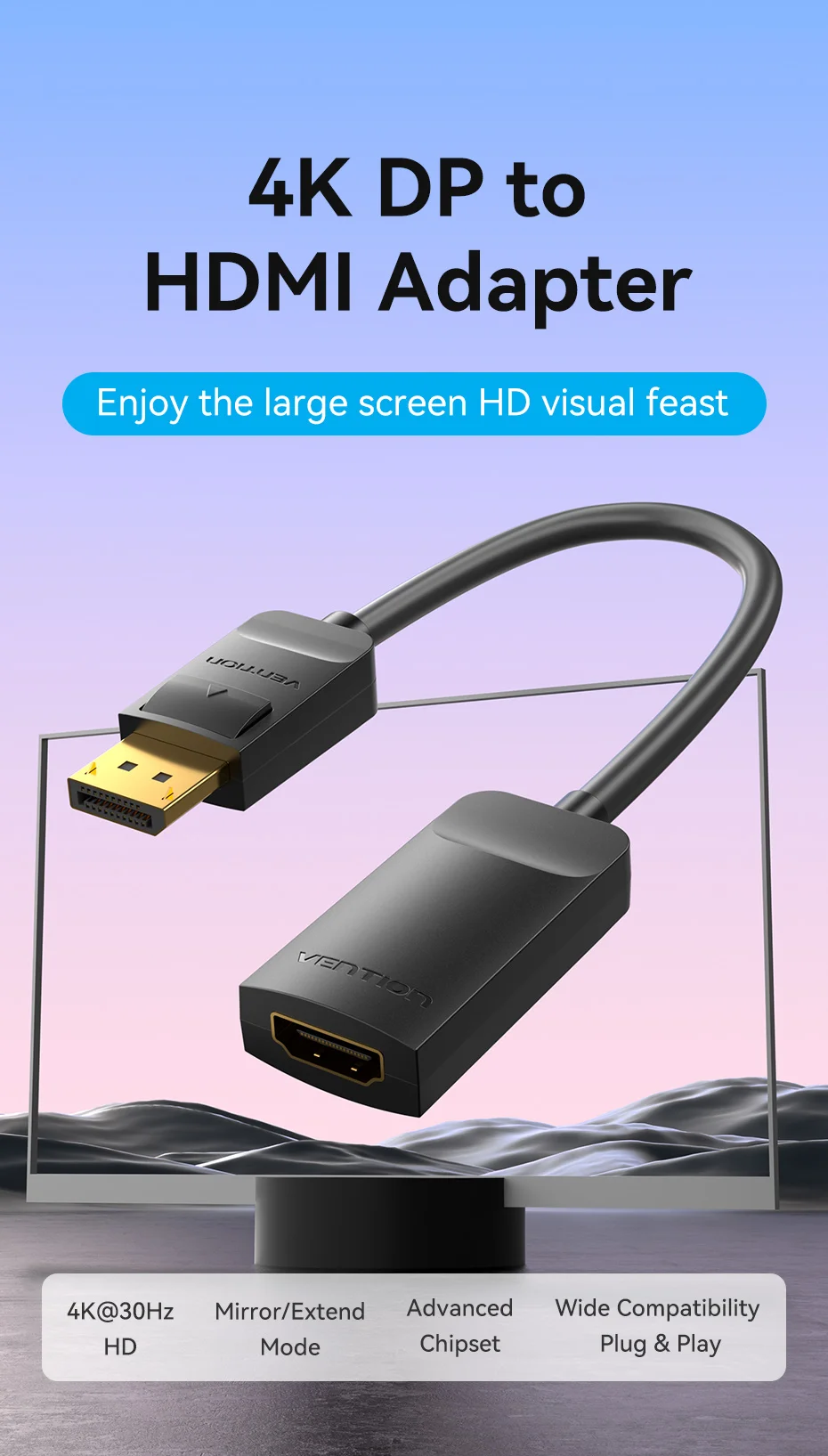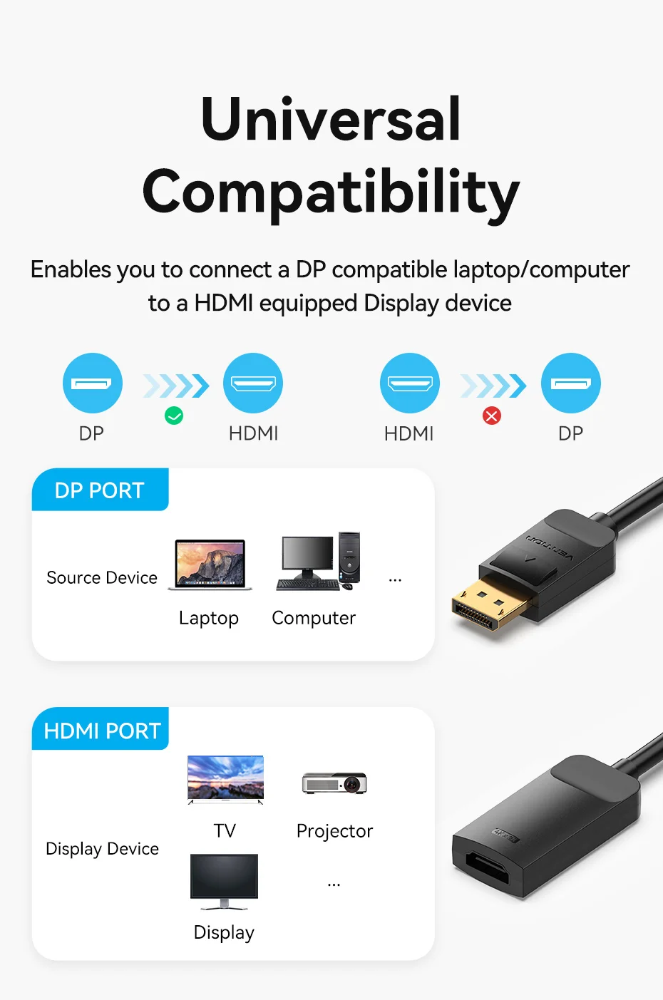 Comprar Vention-adaptador DisplayPort a HDMI, convertidor de Audio y vídeo 4K macho DP a HDMI hembra para PC, portátil, proyector, DisplayPort a HDMI