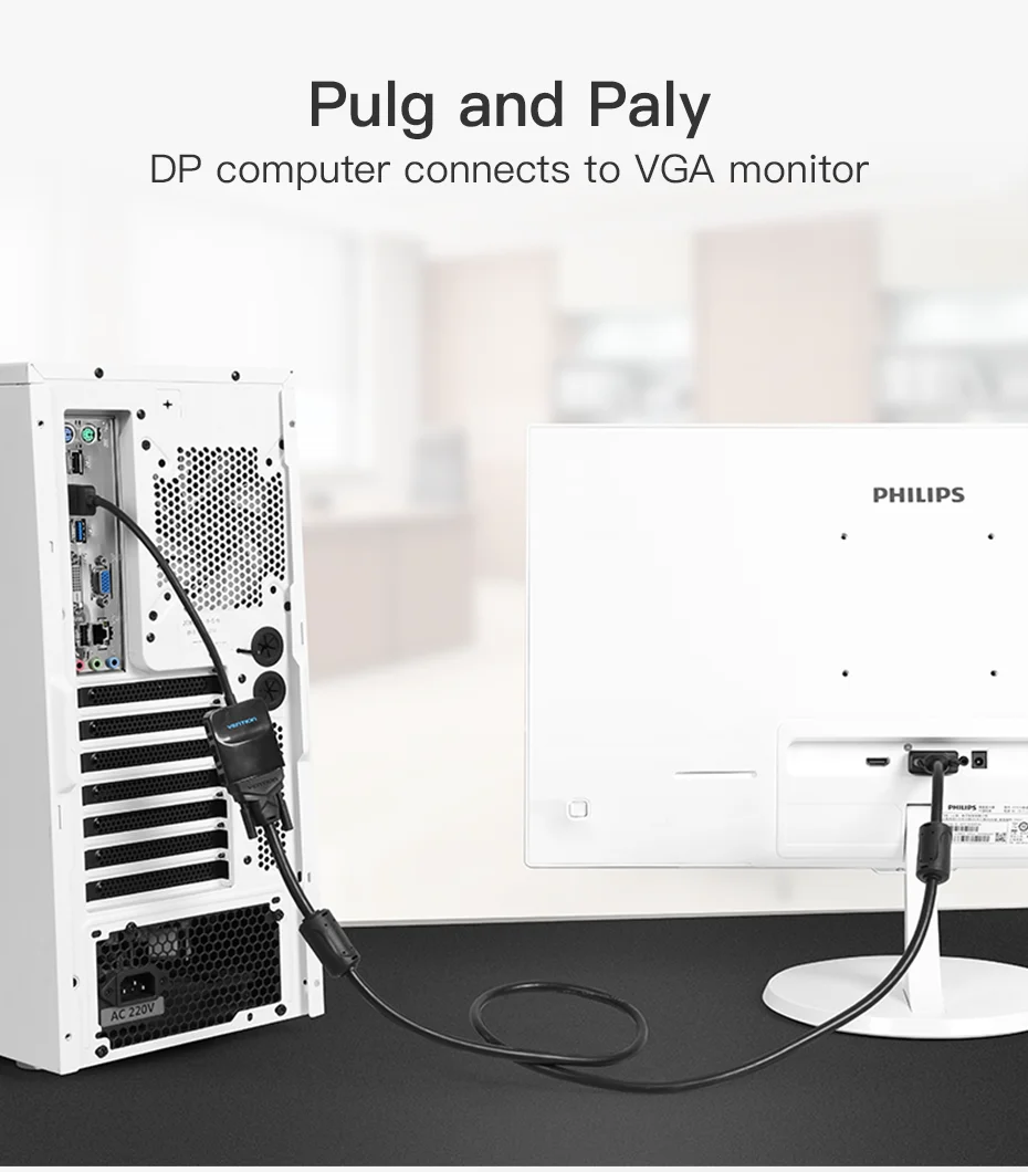 Comprar Vention-Adaptador de Displayport a VGA, convertidor de Audio macho a VGA hembra para proyector, HDTV, DVD Monitor, DP a VGA, 1080P
