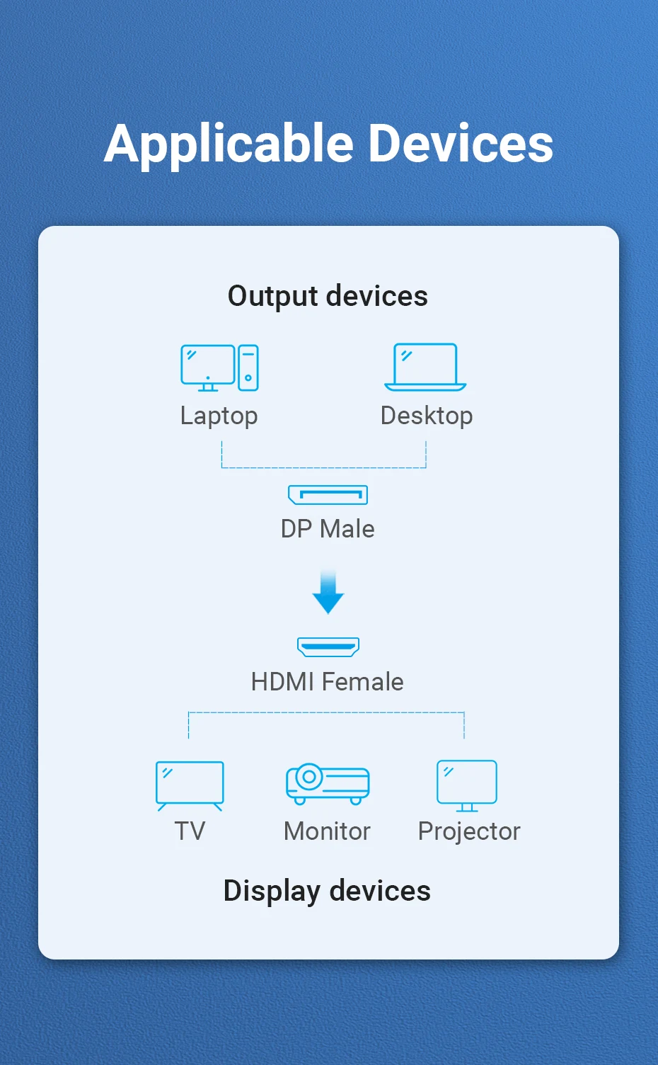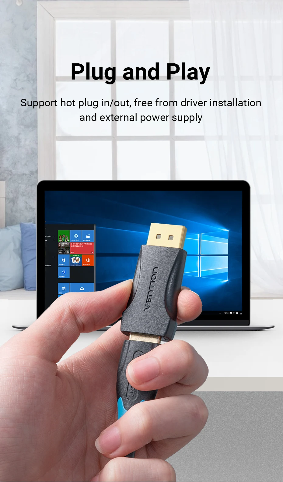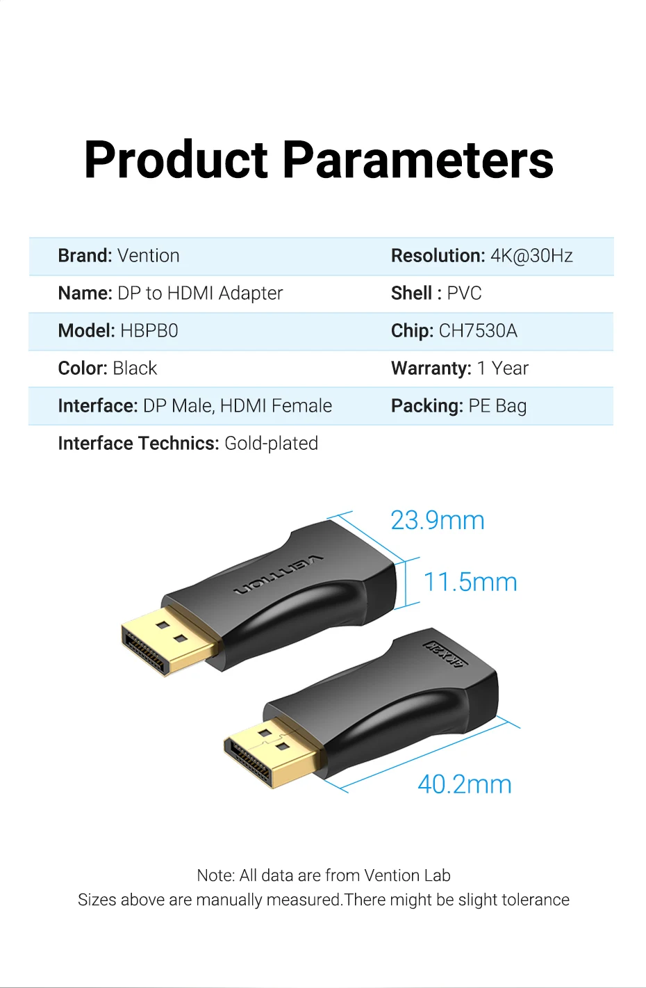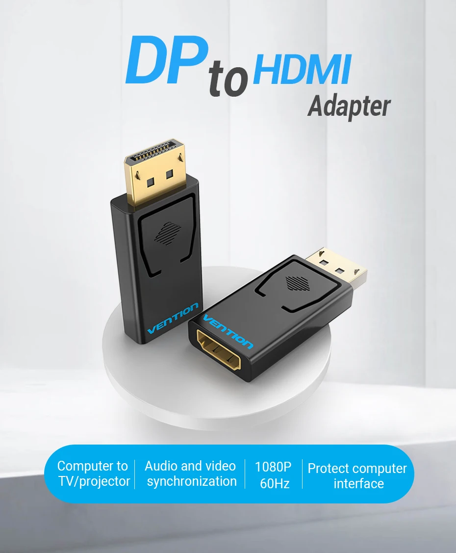 Comprar Vention-adaptador DP a HDMI, convertidor de puerto de pantalla macho a HDMI hembra para PC, portátil, proyector, adaptador DisplayPort a HDMI, 4K30Hz