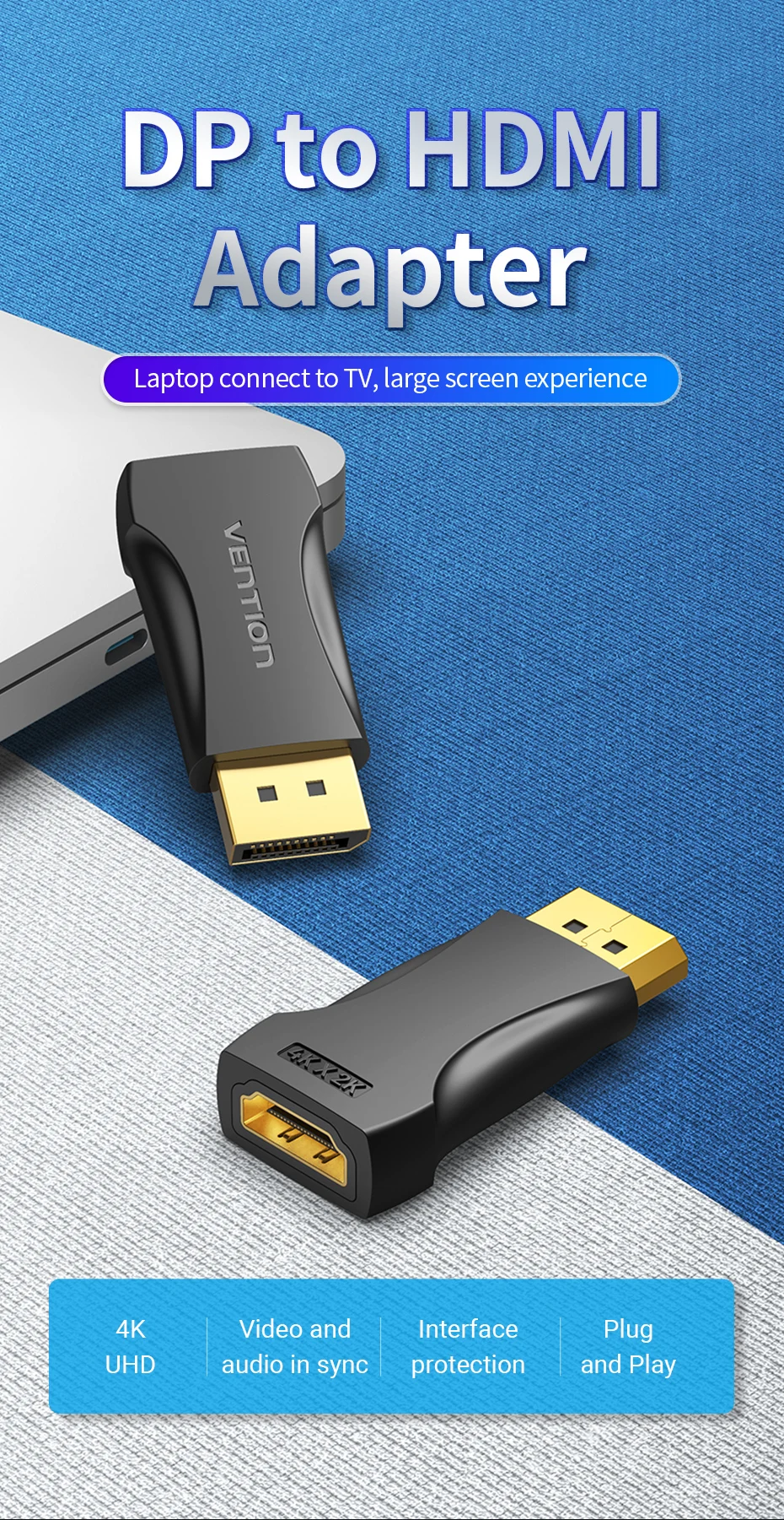 Comprar Vention-adaptador DP a HDMI, convertidor de puerto de pantalla macho a HDMI hembra para PC, portátil, proyector, adaptador DisplayPort a HDMI, 4K30Hz