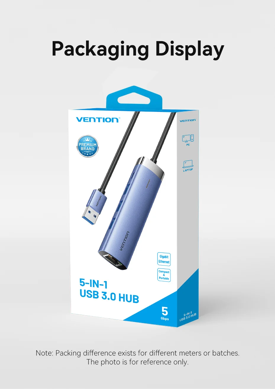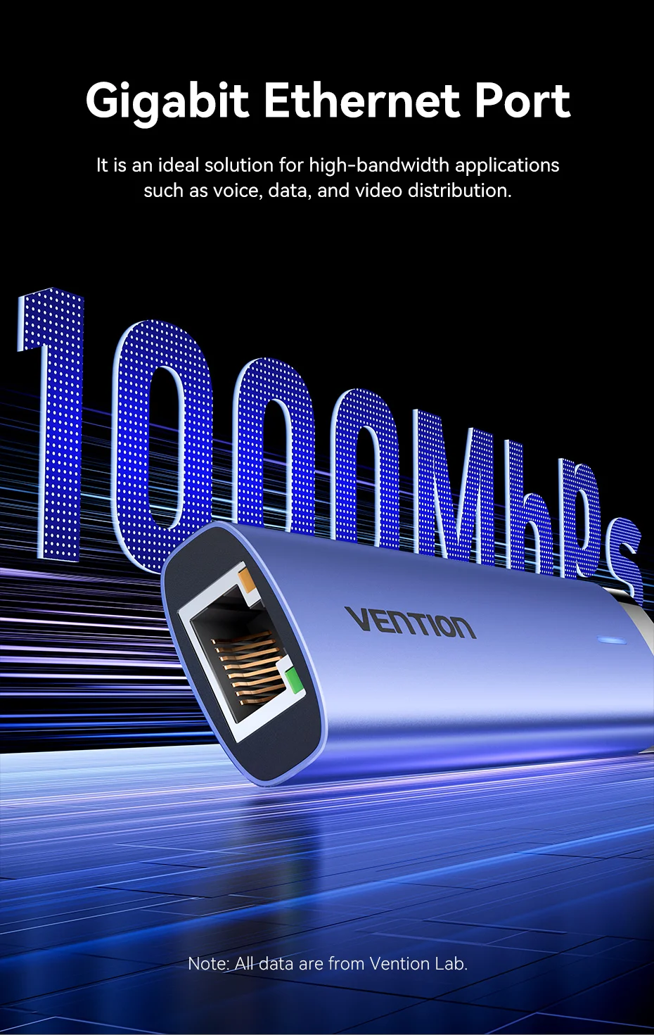 Comprar Vention-adaptador Ethernet USB para ordenador portátil, tarjeta de red de 1000Mbps, HUB RJ45 Lan para Macbook, Windows, PC, Xiaomi Mi TV Box, USB-C