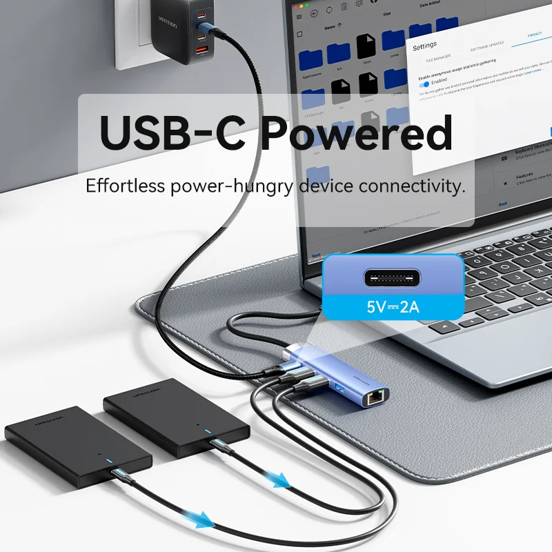 Comprar Vention-adaptador Ethernet USB para ordenador portátil, tarjeta de red de 1000Mbps, HUB RJ45 Lan para Macbook, Windows, PC, Xiaomi Mi TV Box, USB-C